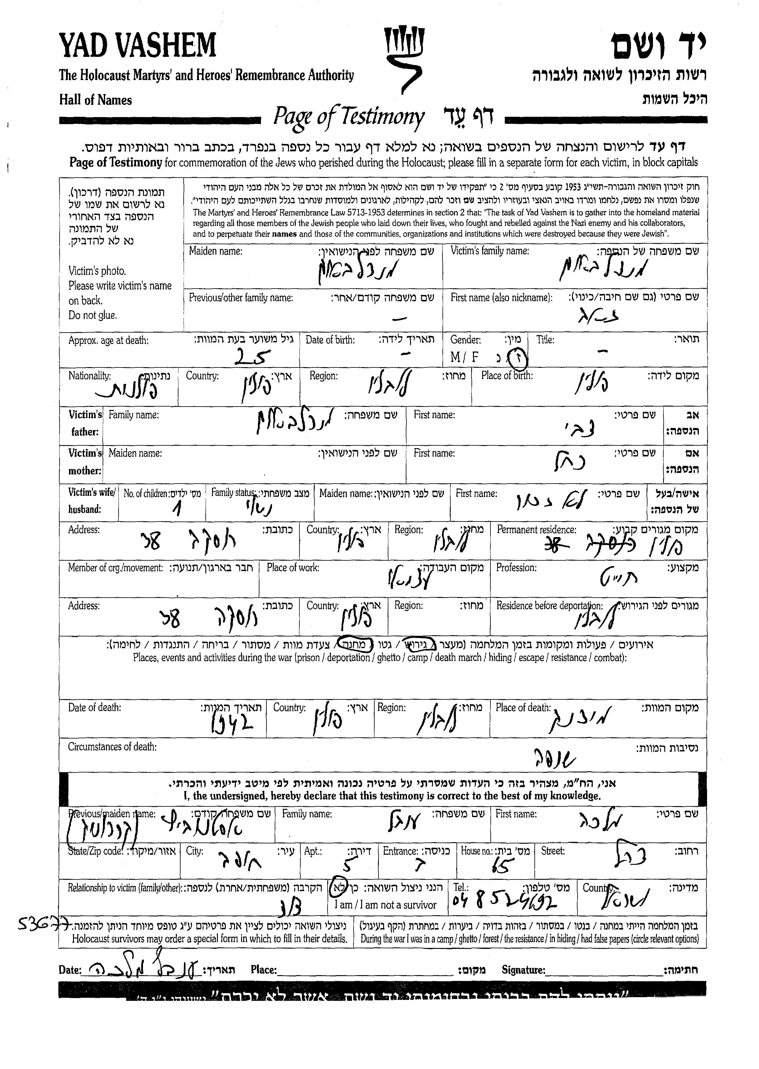 Zeev wurde in der Schoah ermordet. Todesort: Majdanek, Polen im Jahr 1942.