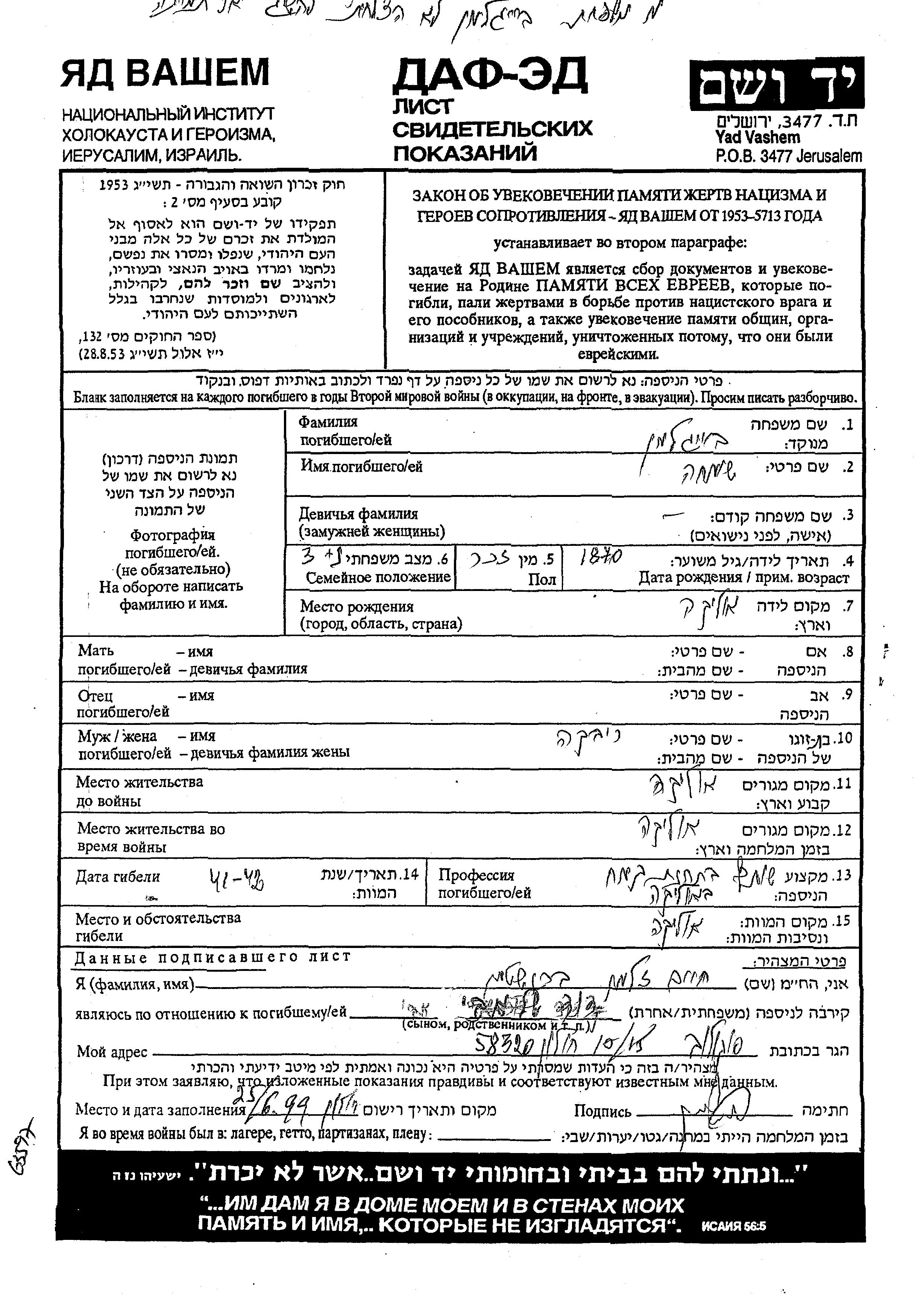 Simkha wurde in der Schoah ermordet. Todesort: Olika, Polen im Jahr 1941.