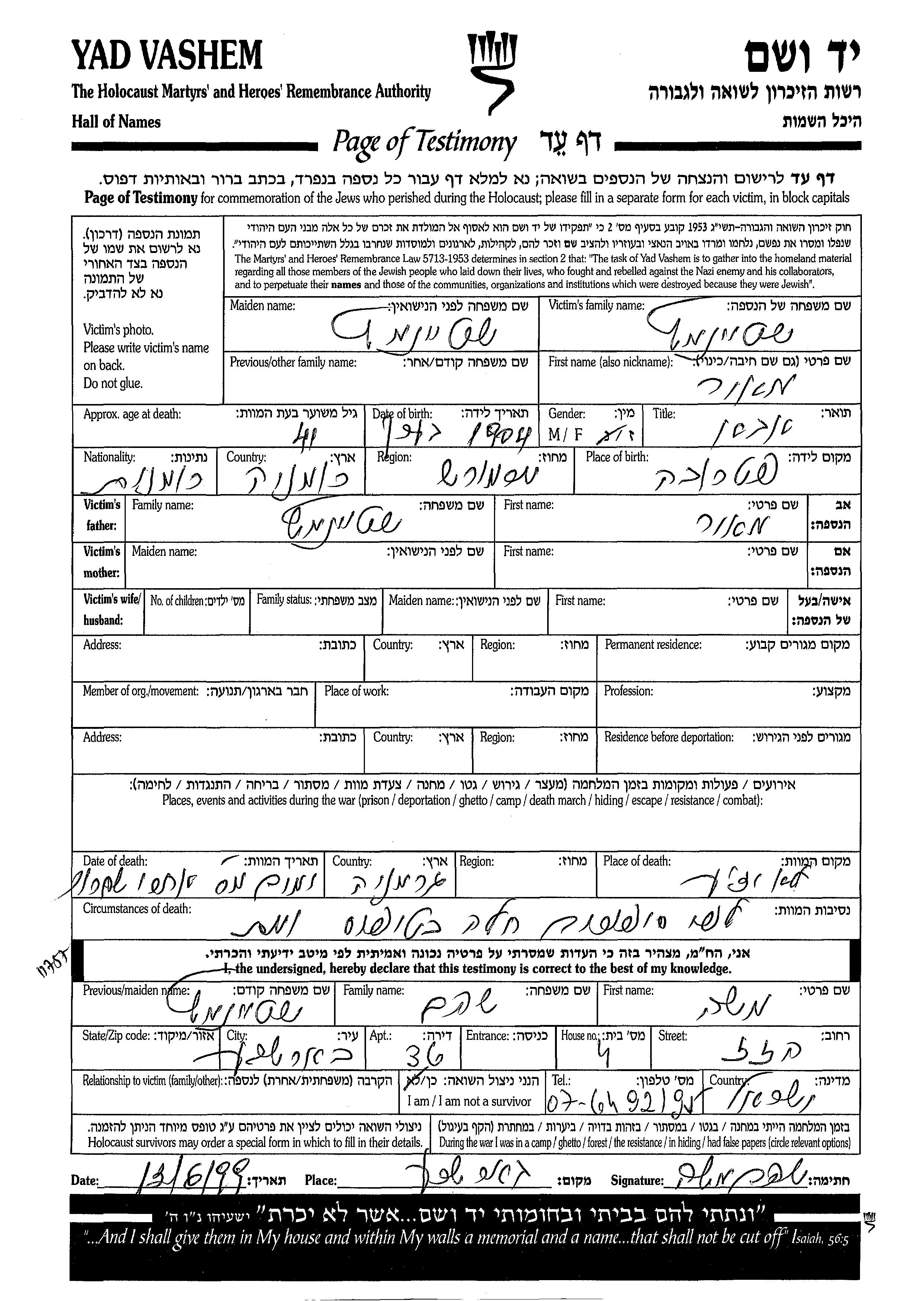 Yad Vashem - Gedenkblätter Sammlung