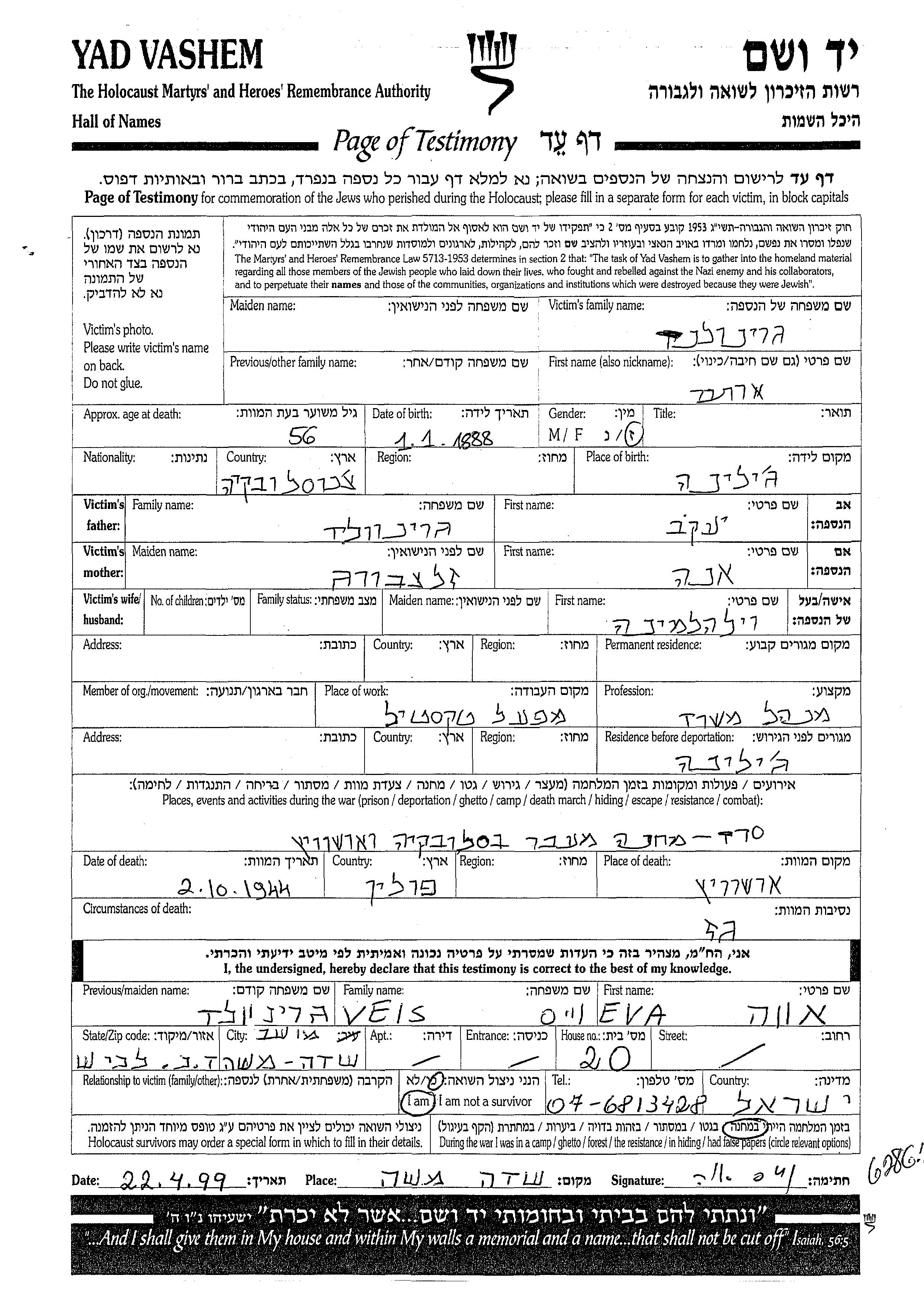 Artur Grinvald wurde im Jahr 1888 in Gelina, Tschechoslowakei geboren. Er war der Sohn von Yaakov und Ana. Er war Büroleiter. Während des Krieges war er in Gelina, Tschechoslowakei.