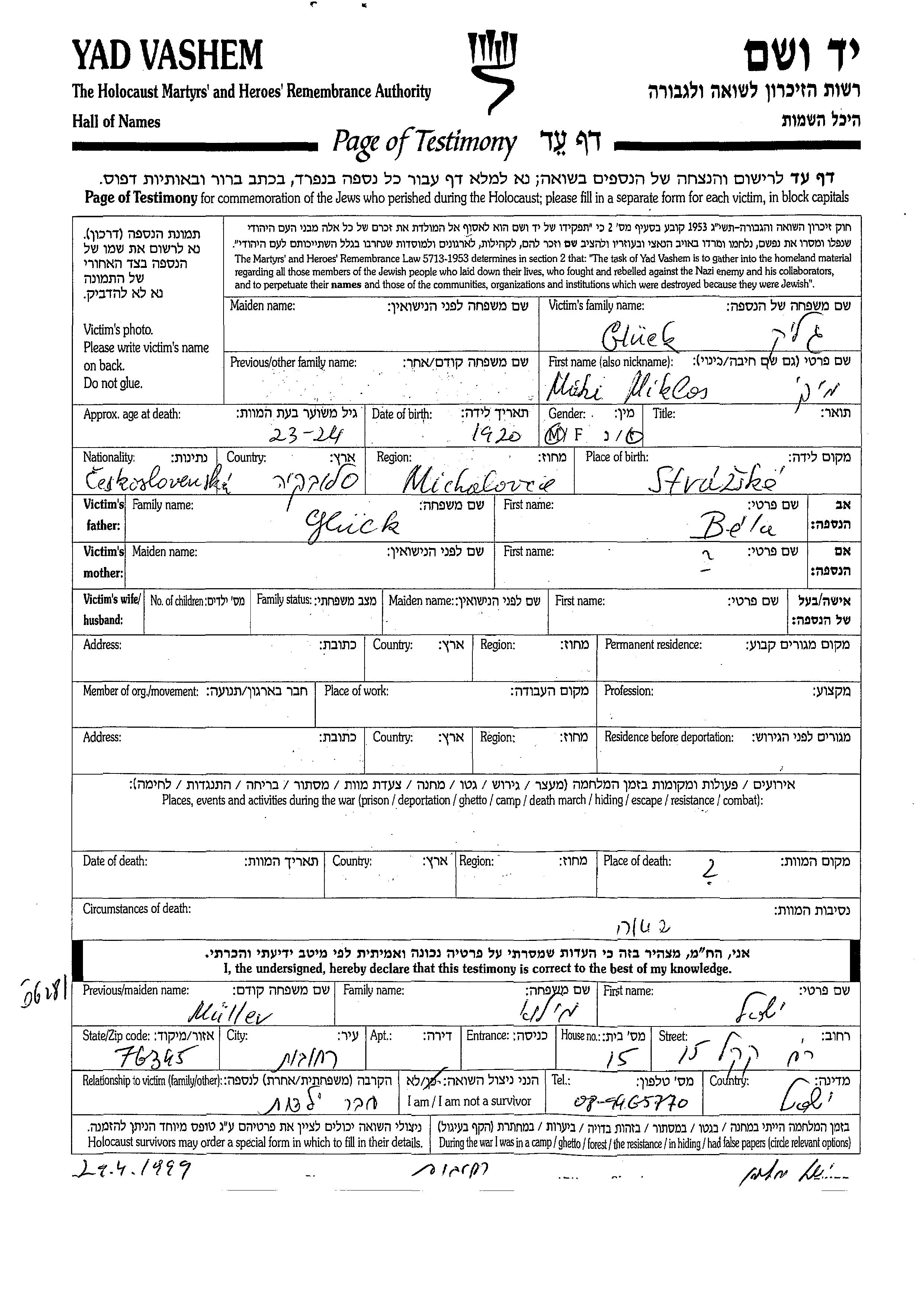 Miklos Miki Maki Gluck wurde im Jahr 1920 in Strazky, Tschechoslowakei geboren. Er war der Sohn von Bela.