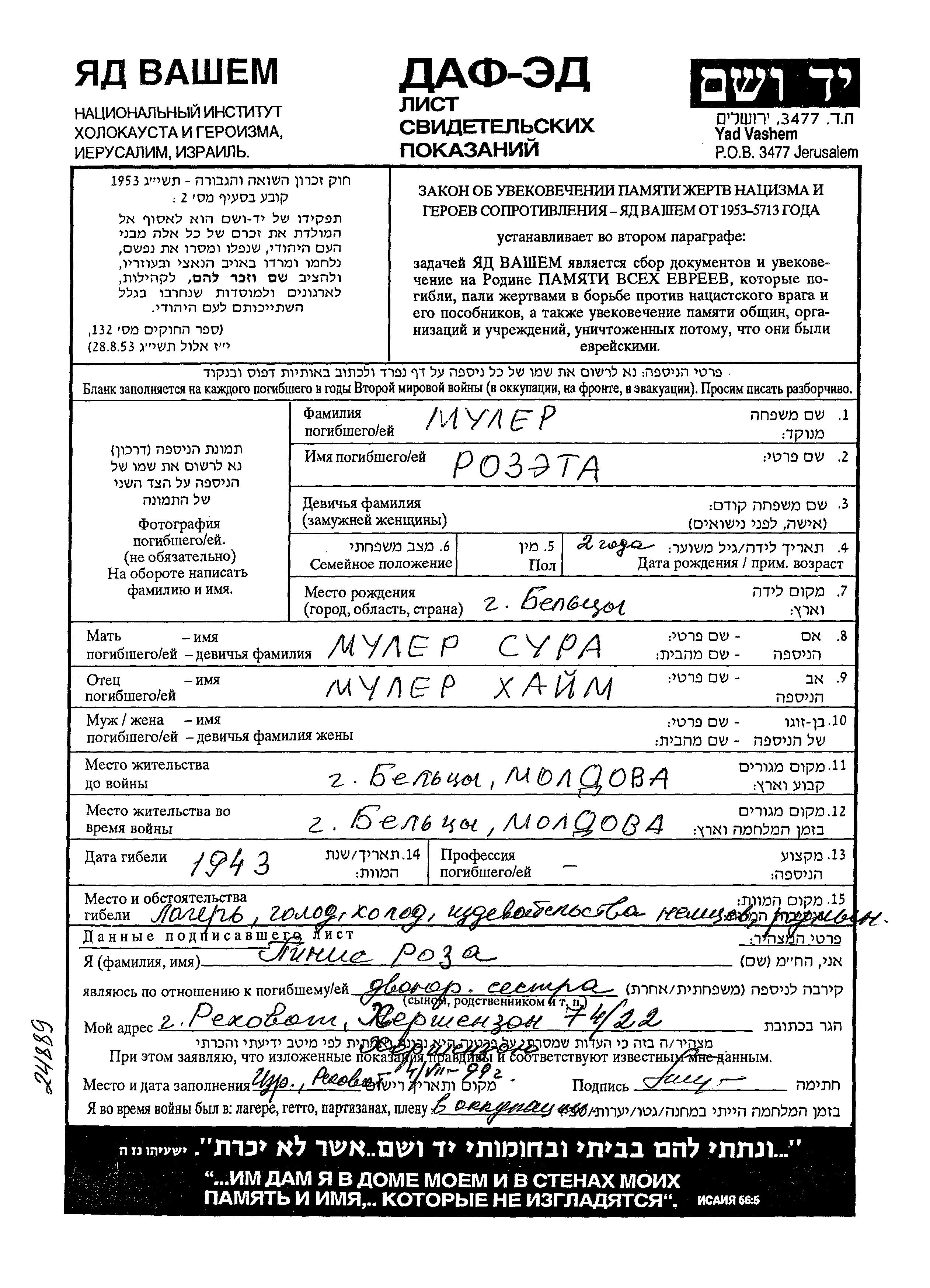 Rozeta wurde in der Schoah ermordet. Todesort: Lager im Jahr 1943.