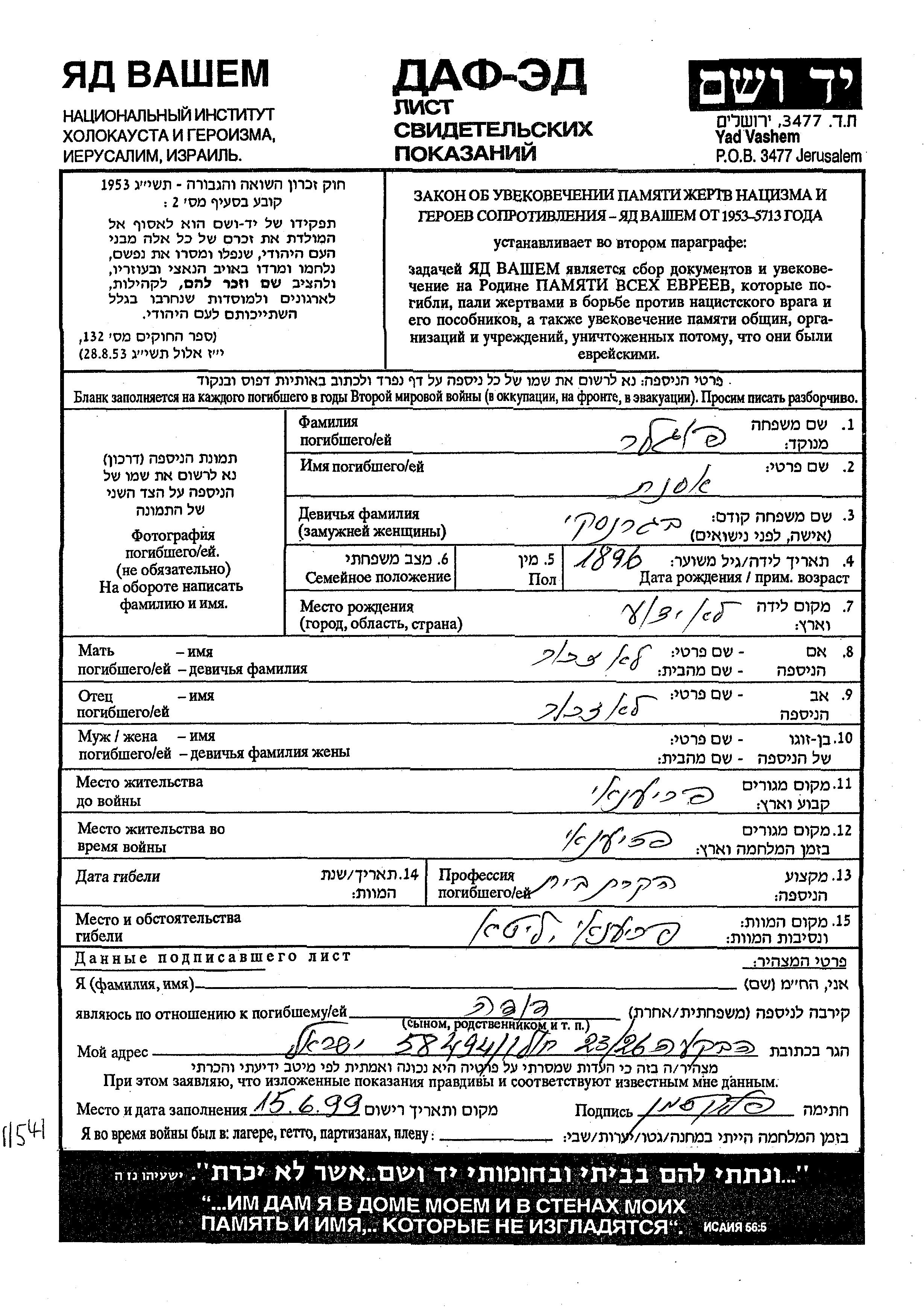 Asnat wurde in der Schoah ermordet. Todesort: Preni, Litauen.