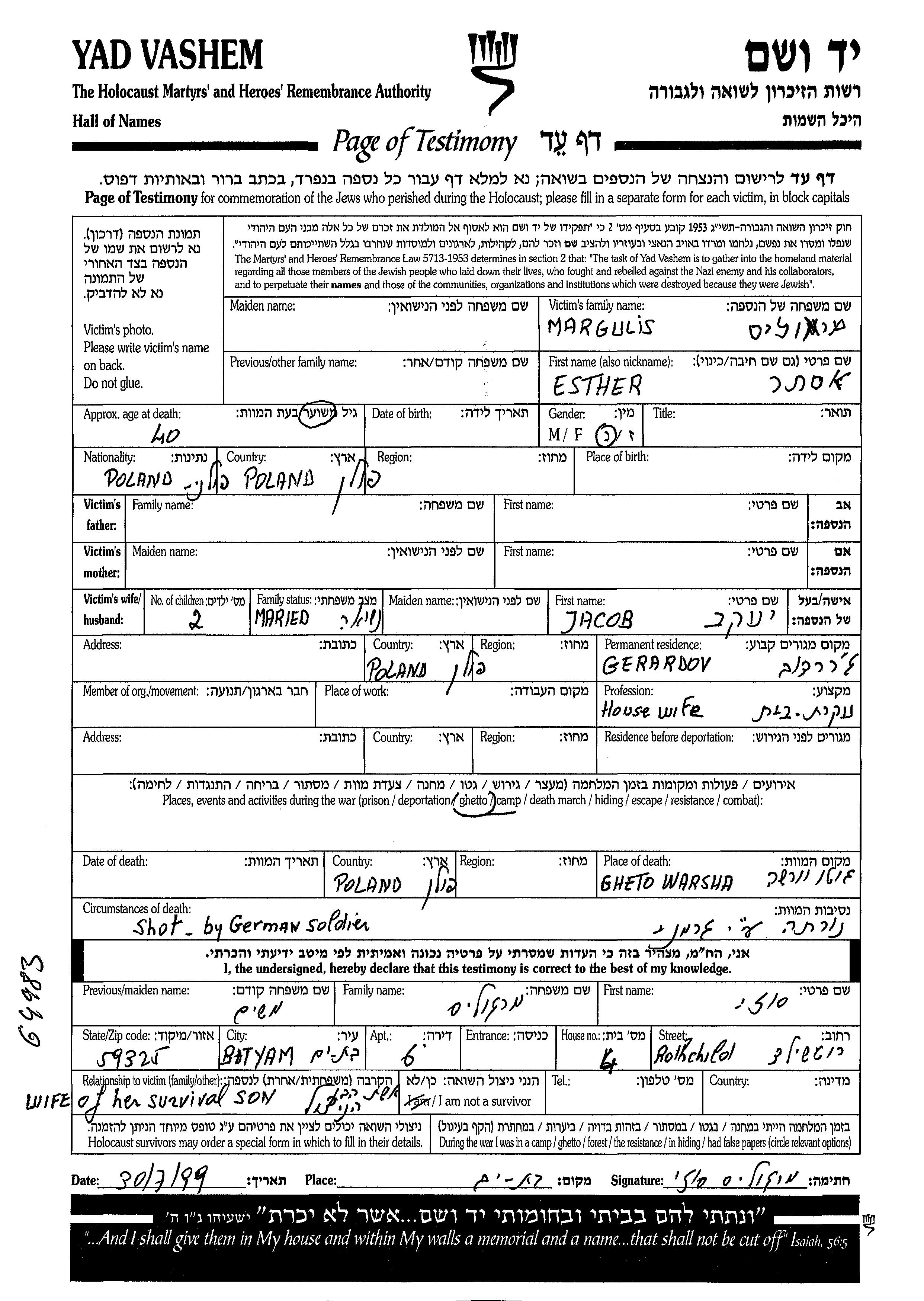 Juden wurden in der Schoah auf verschiedenste Weisen ermordet, unter anderem: Vergasen, Erschiessen, lebendig verbrannt werden, lebendig begraben werden, Tod durch Erschöpfung durch Zwangsarbeit, Epidemien, mangels jeder hygienischer Bedingung oder dem Fehlen medizinischer Versorgung. Manche Juden nahmen sich das Leben, um der Festnahme und weiterer Verfolgung zu entgehen oder ihr hoffnungsloses, nicht nachlassendes Leiden zu beenden. Zehntausende jüdische Soldaten der sowjetischen Armee, die als Kriegsgefangene gefangen genommen wurden, wurden als Juden selektiert und ermordet. Viele wurden als „vermisst“ registriert.