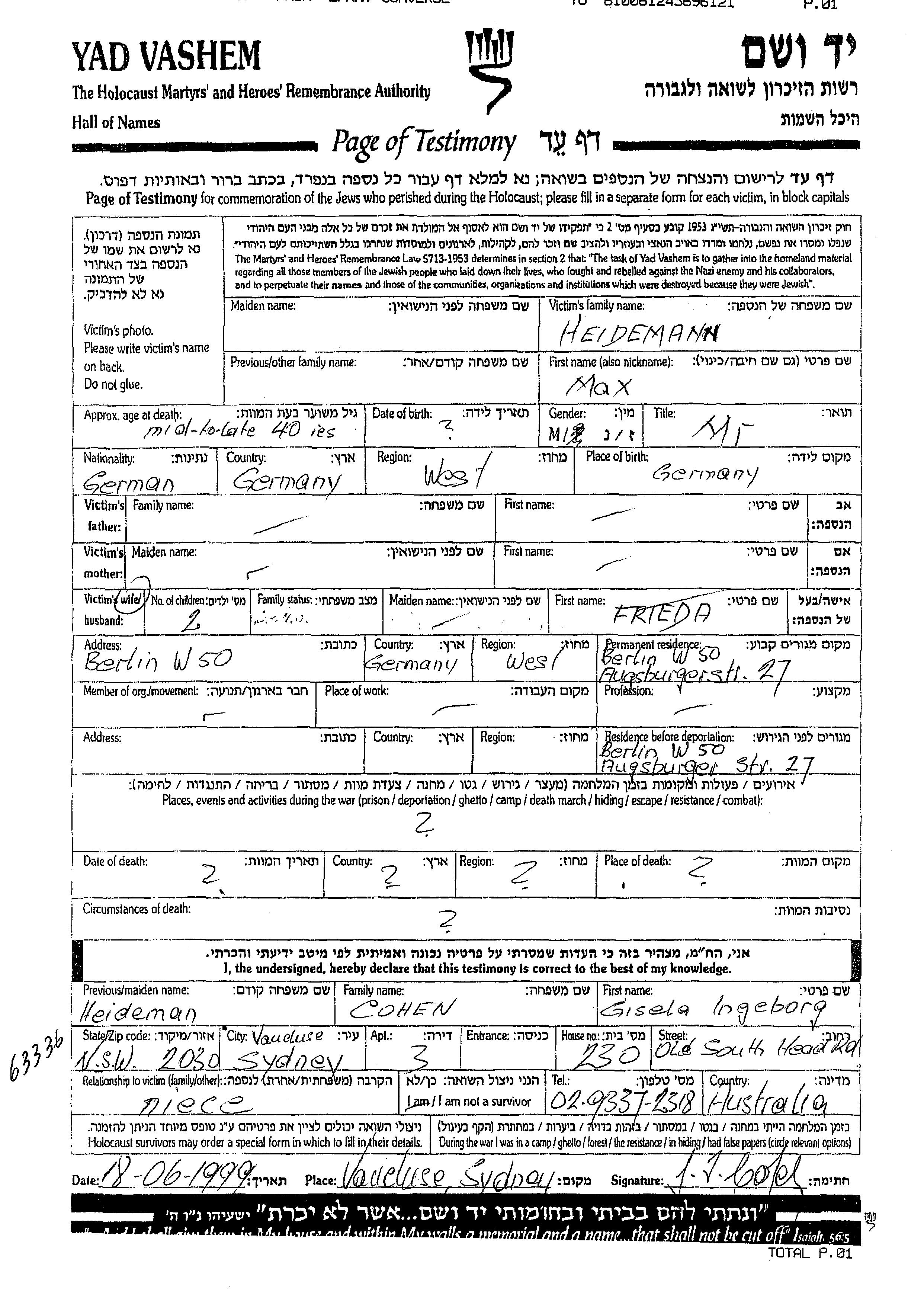Max Heidemann wurde in Deutsches Reich geboren. Vor dem Zweiten Weltkrieg lebte er in Berlin, Deutsches Reich. Während des Krieges war er in Berlin, Deutsches Reich.