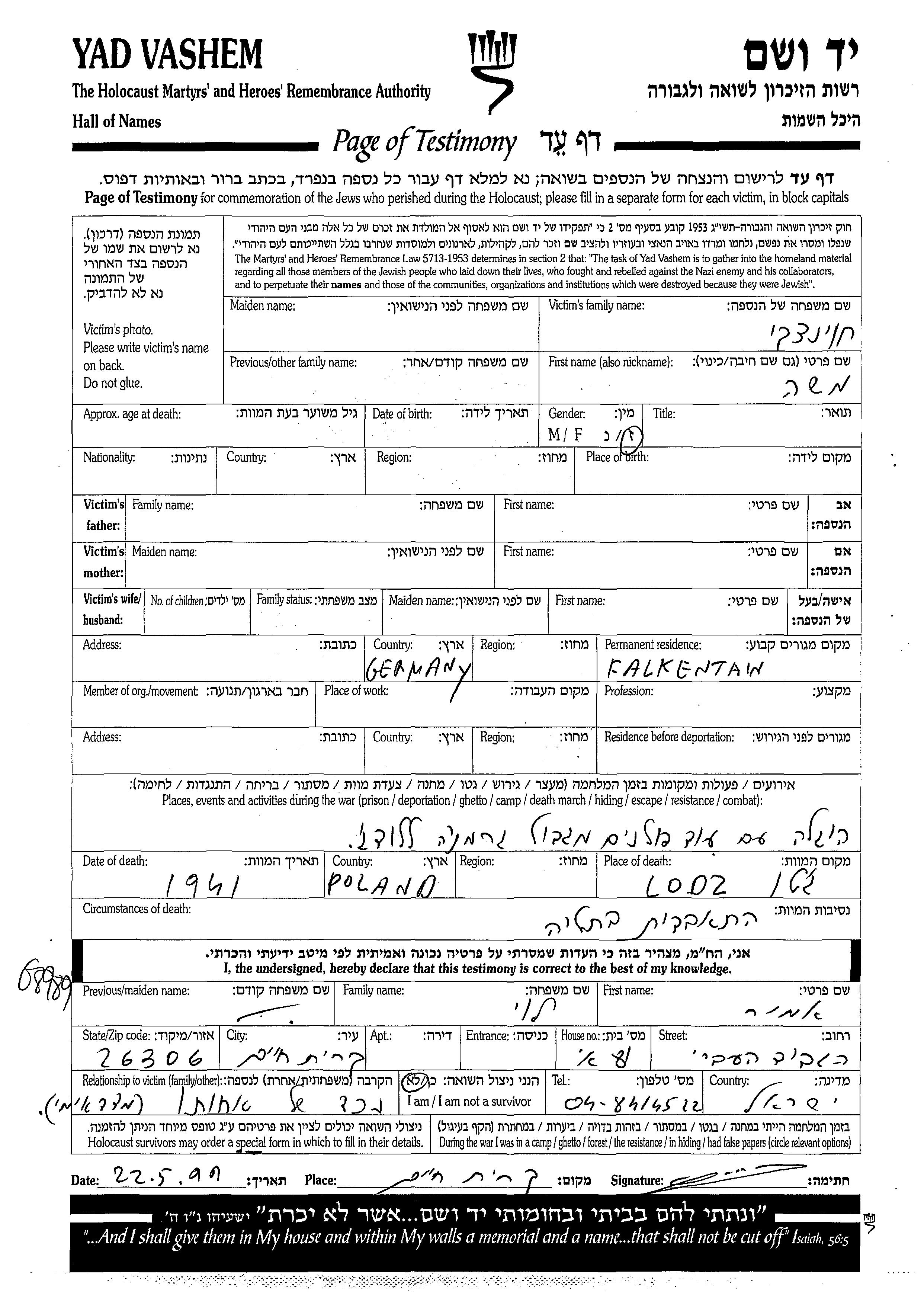 Moshe wurde in der Schoah ermordet. Todesort: Lodz, Polen im Jahr 1941.