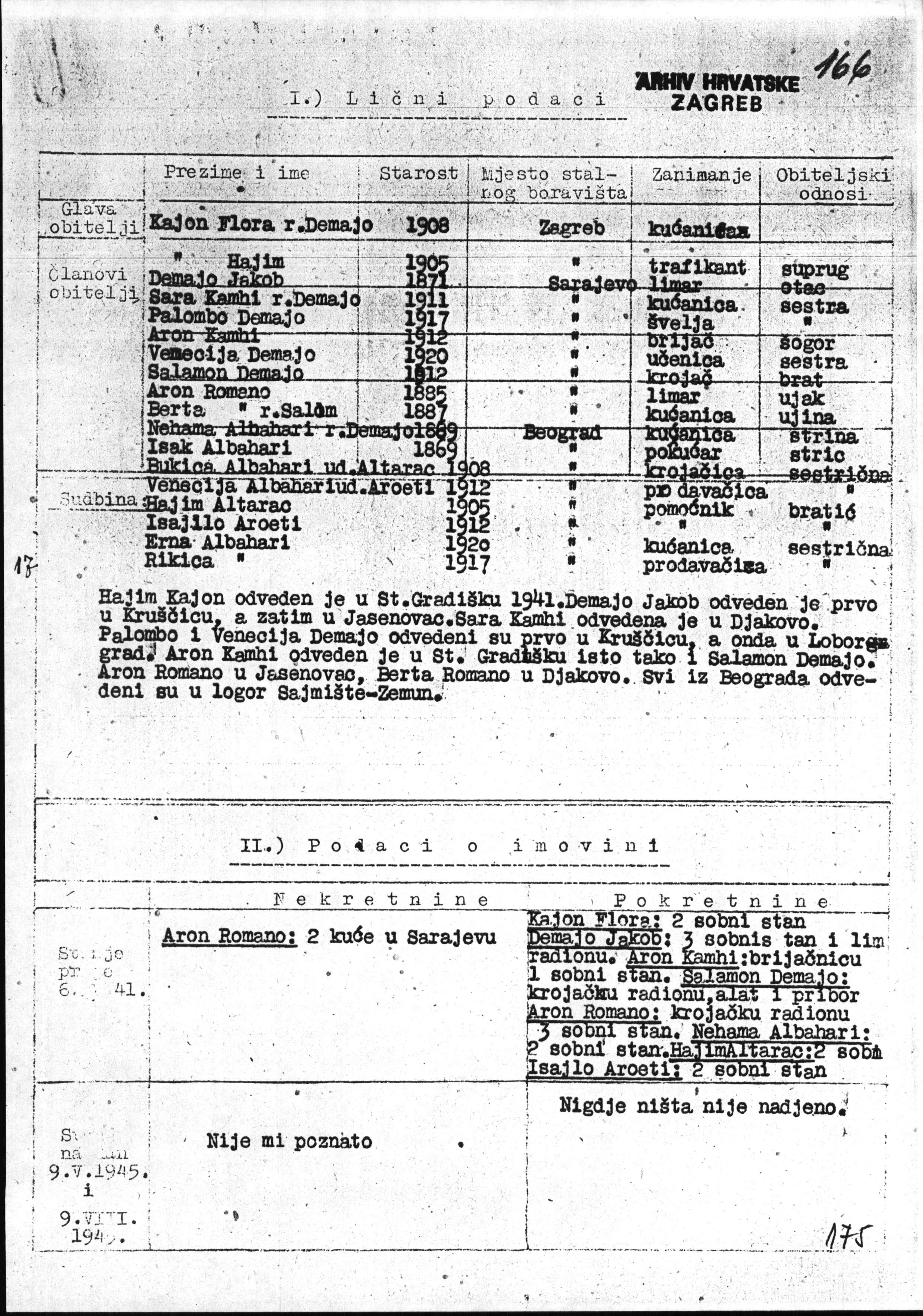 List of Jews from Zagreb and the surrounding area including their fate and details of the damage caused to their property, Letters A-W, 1945