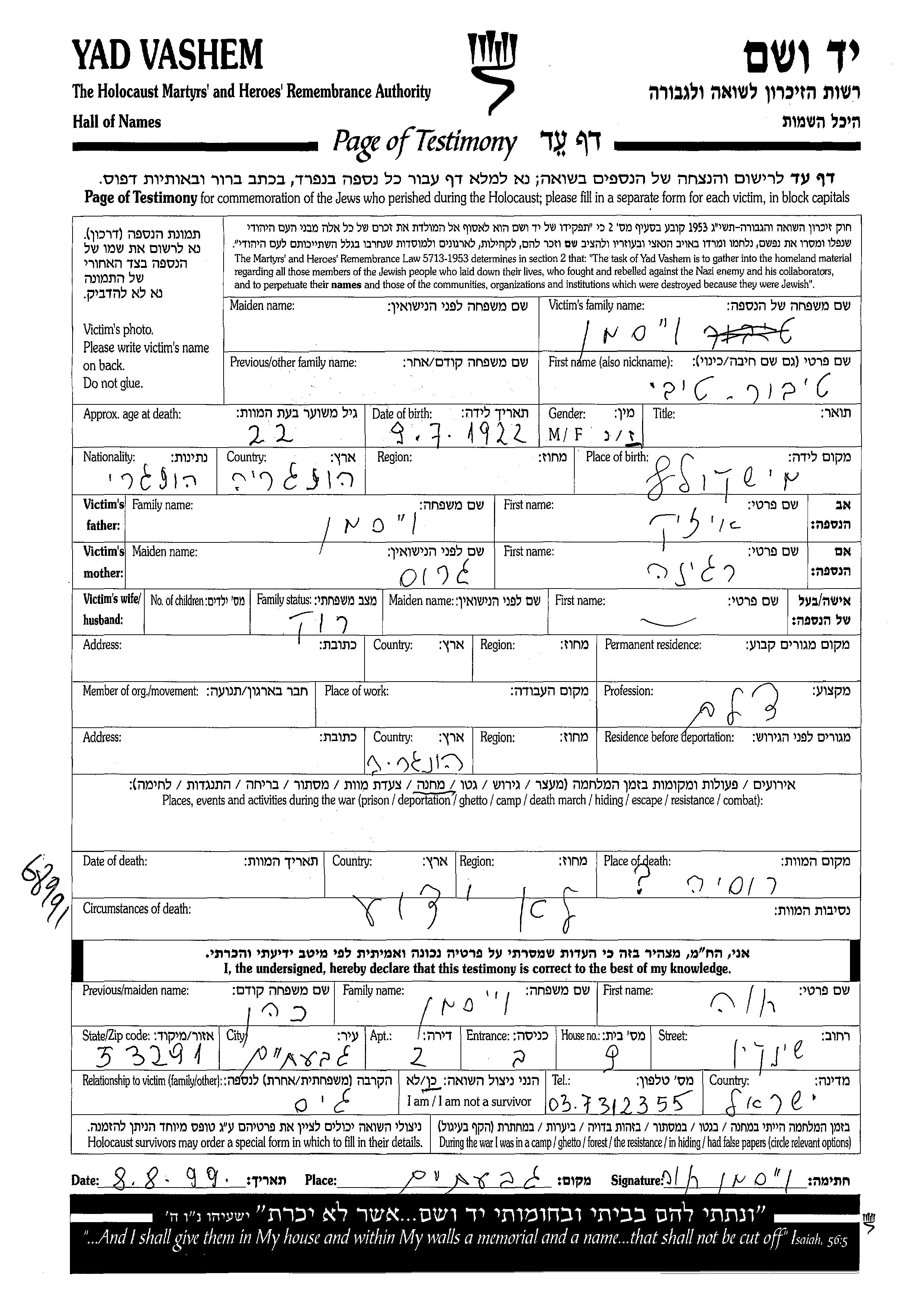 Veisman Tibor 1922 unbekannter Ort, Gedenkblatt