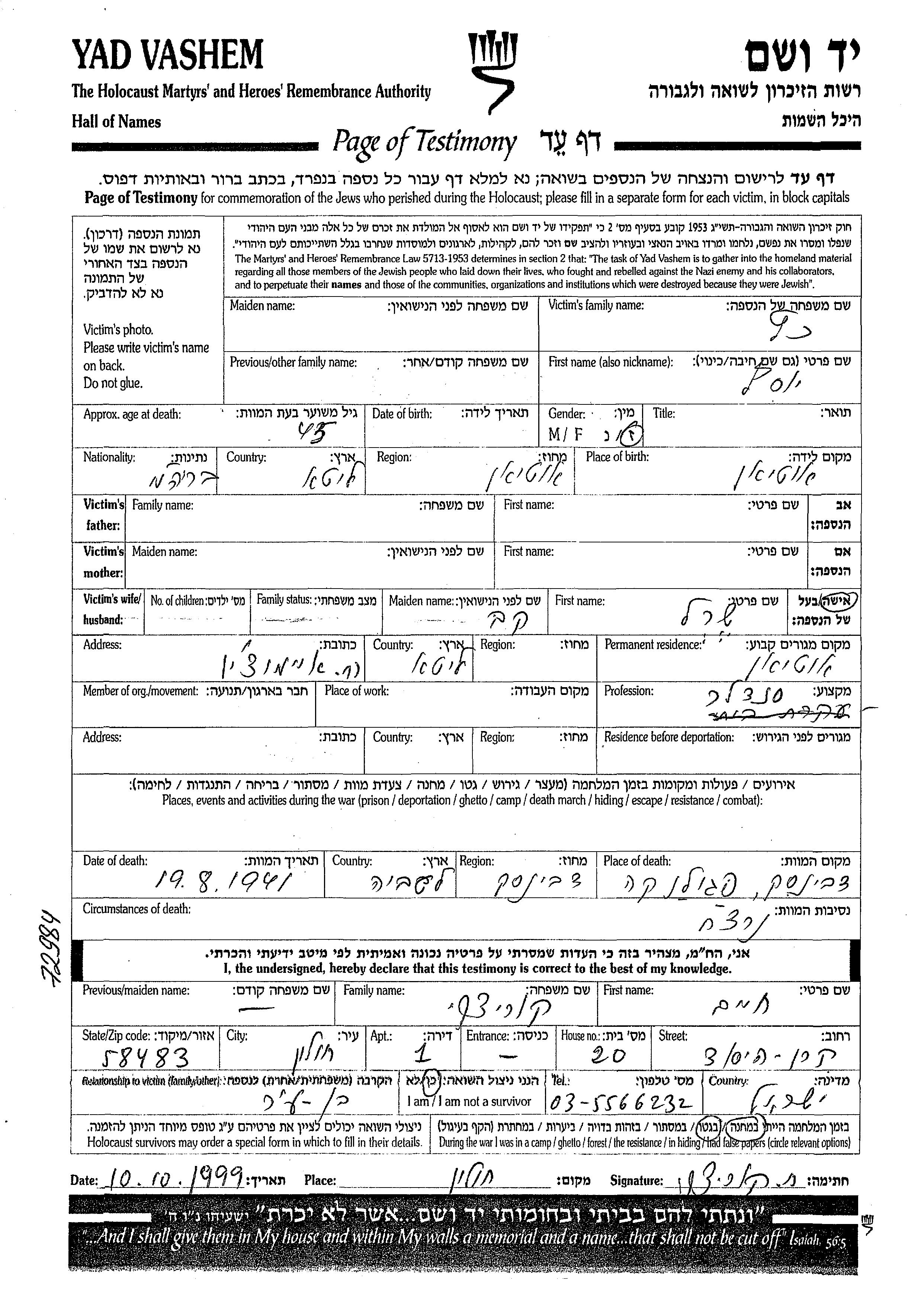 Yosef wurde in der Schoah ermordet. Todesort: Pogulyanski Forest, Lettland im Jahr 19/08/1941.