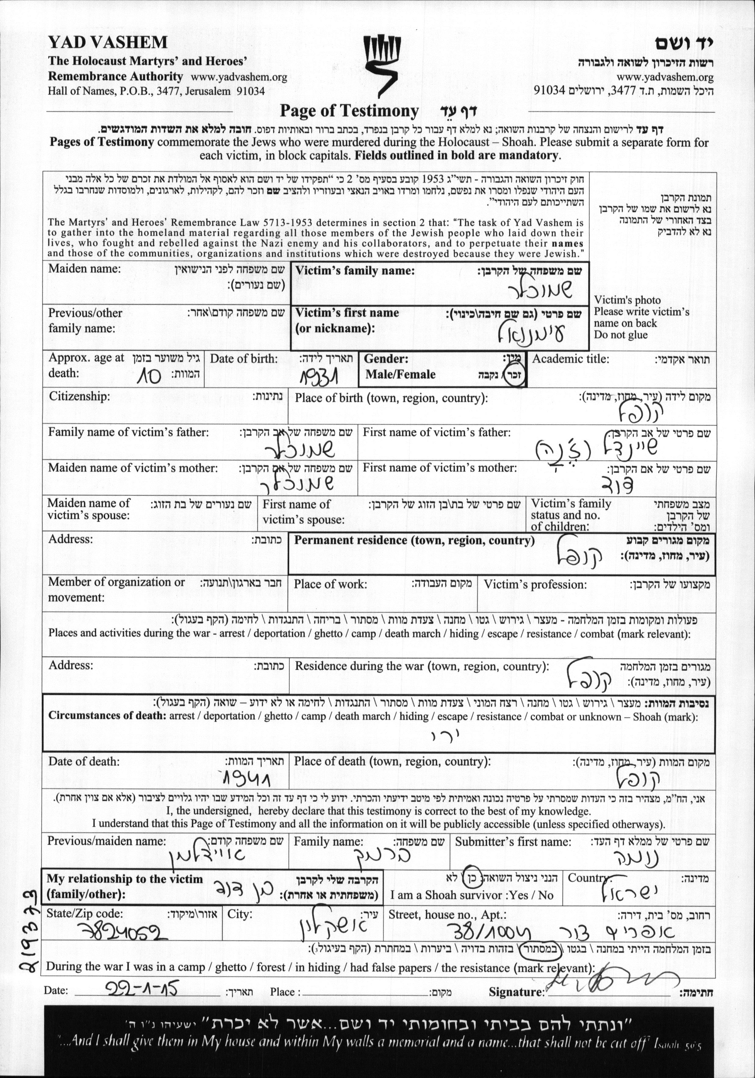 Emanuel wurde in der Schoah ermordet. Todesort: Kupel, Ukraine (UdSSR) im Jahr 1941.