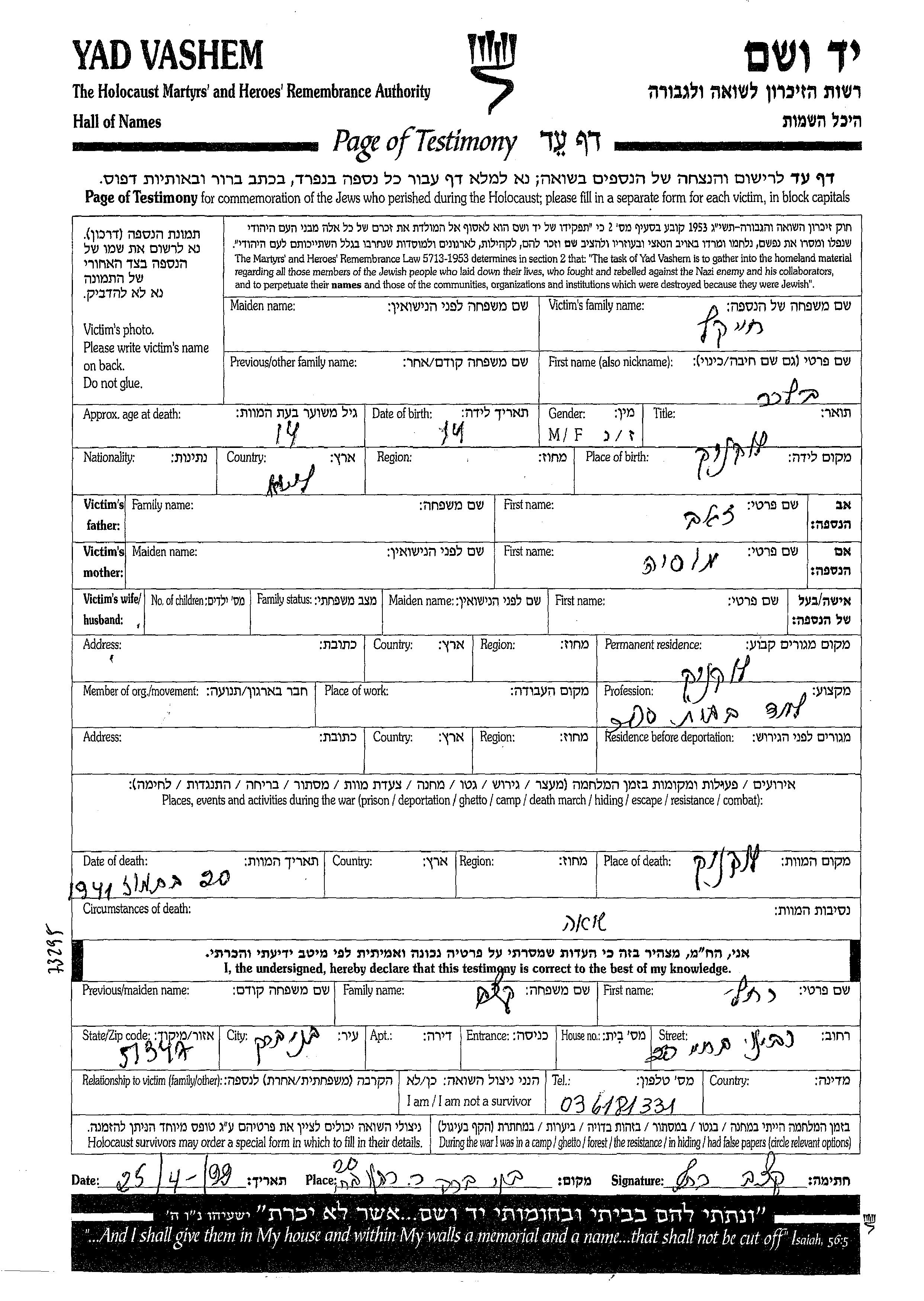 Bela wurde in der Schoah ermordet. Todesort: Luknik, Litauen im Jahr 20/07/1941.