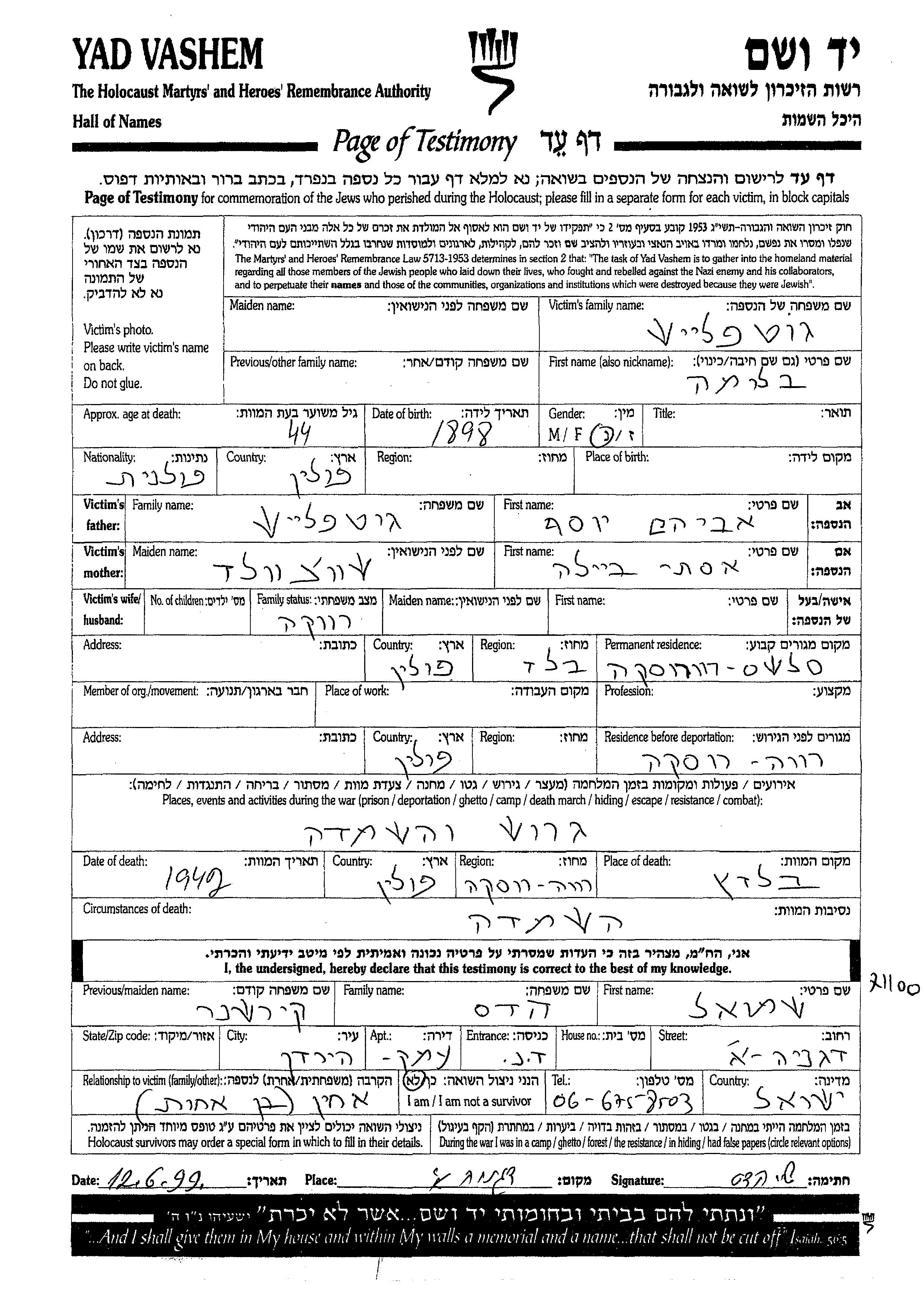 Bluma wurde in der Schoah ermordet. Todesort: Belzec, Polen im Jahr 1942.