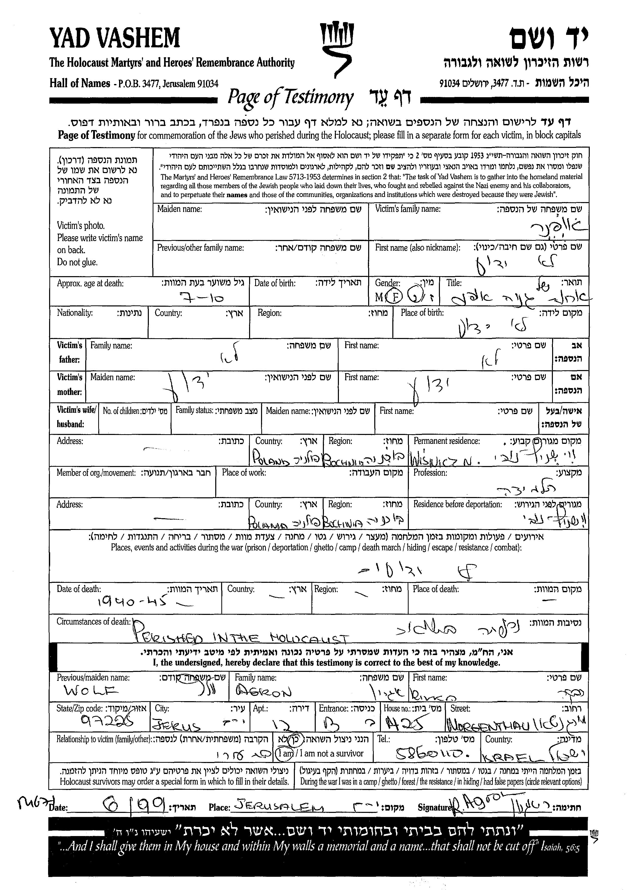 Vorname unbekannt Ofner. Sie war Schüler/-in und Kind. Vor dem Zweiten Weltkrieg lebte sie in Wisnicz, Polen. Während des Krieges war sie in Wisnicz, Polen.