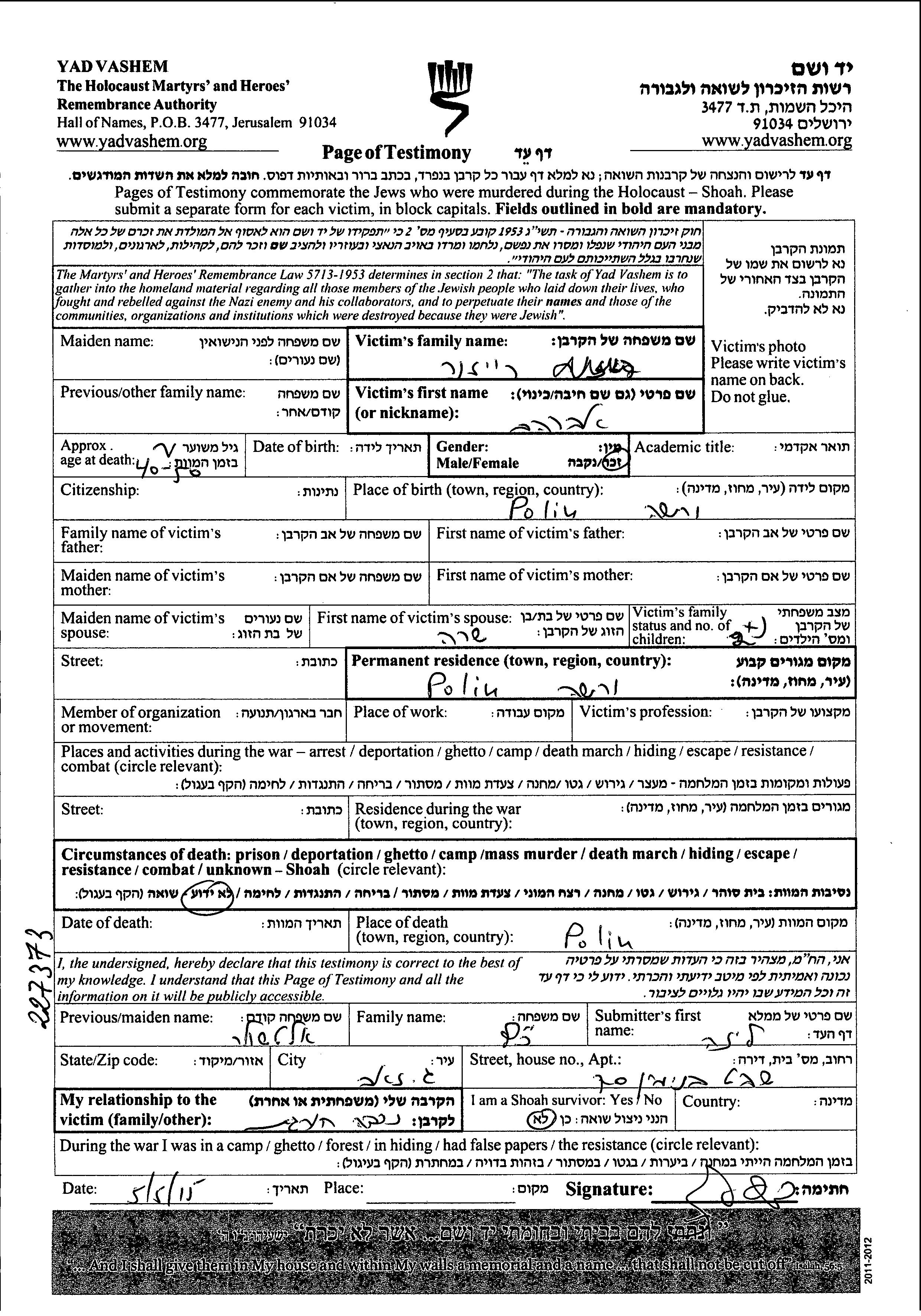 Avraham wurde in der Schoah ermordet. Todesort: Polen.
