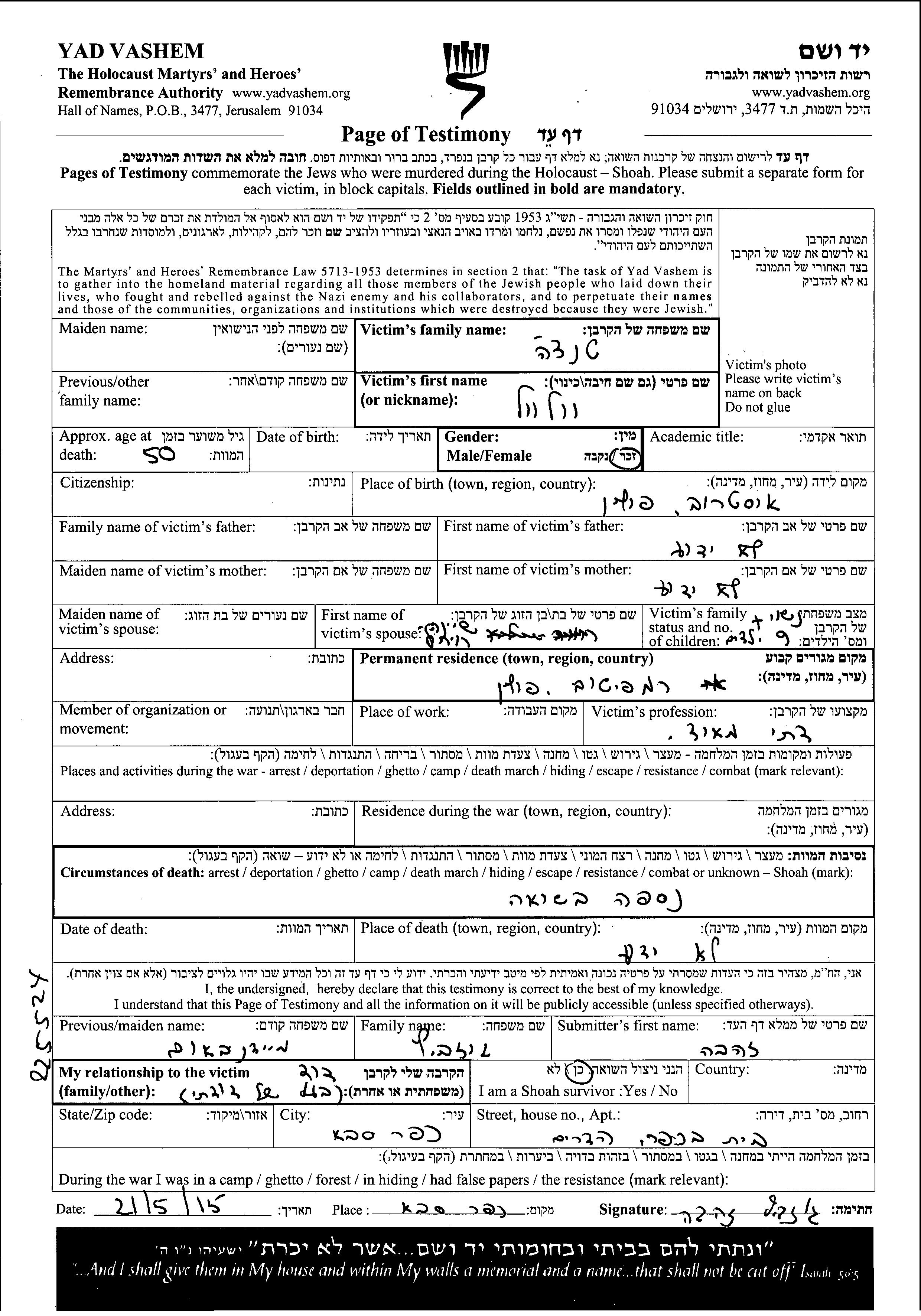 Volf Tencha wurde in Ostrow, Polen geboren. Er war mit Sheina Rakhel Verheiratet. Vor dem Zweiten Weltkrieg lebte er in Rembertow, Polen.