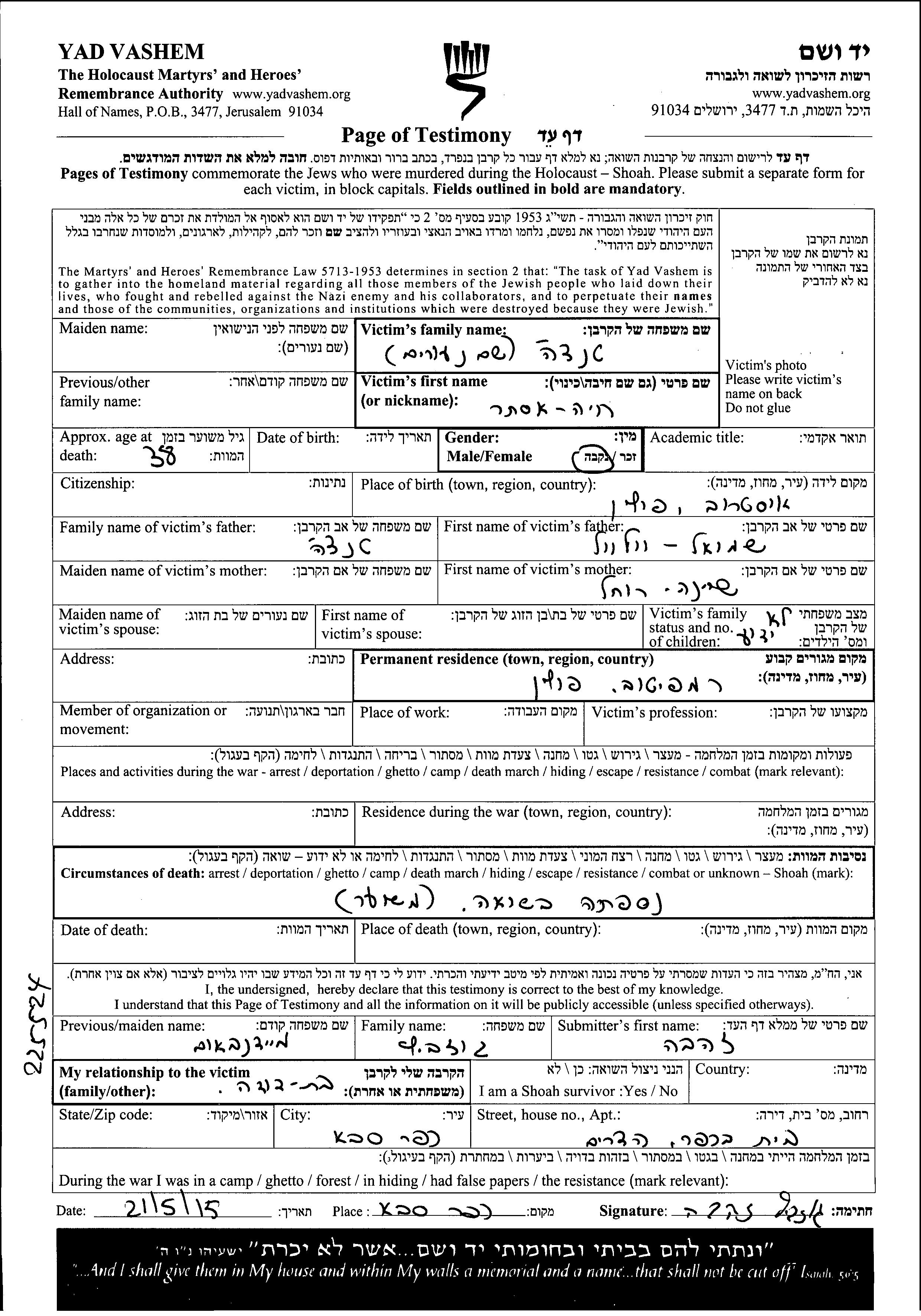 Name unbekannt Khaia Ester Rembertow, Polen Gedenkblatt
