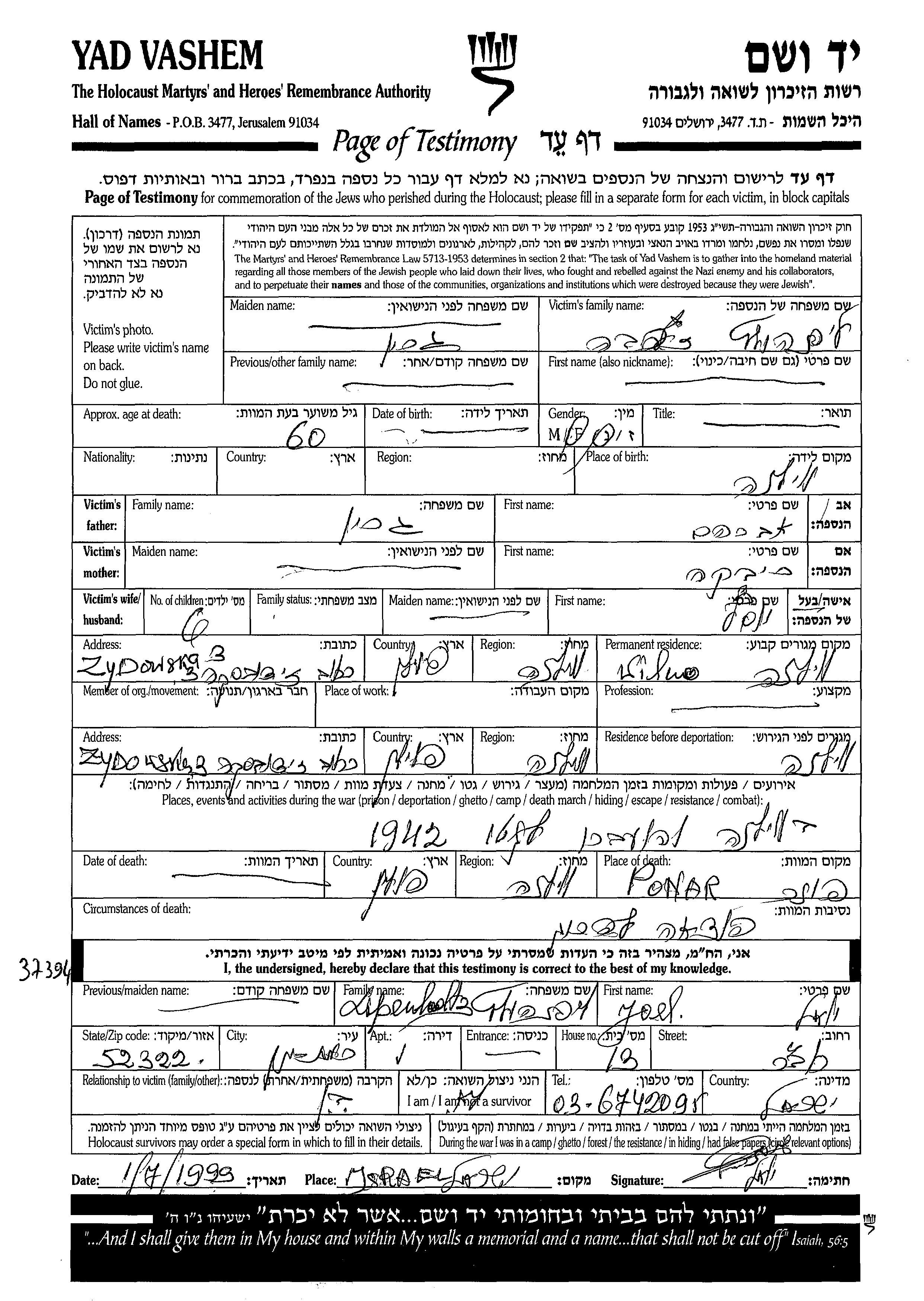 Zahava wurde in der Schoah ermordet. Todesort: Ponary, Polen.