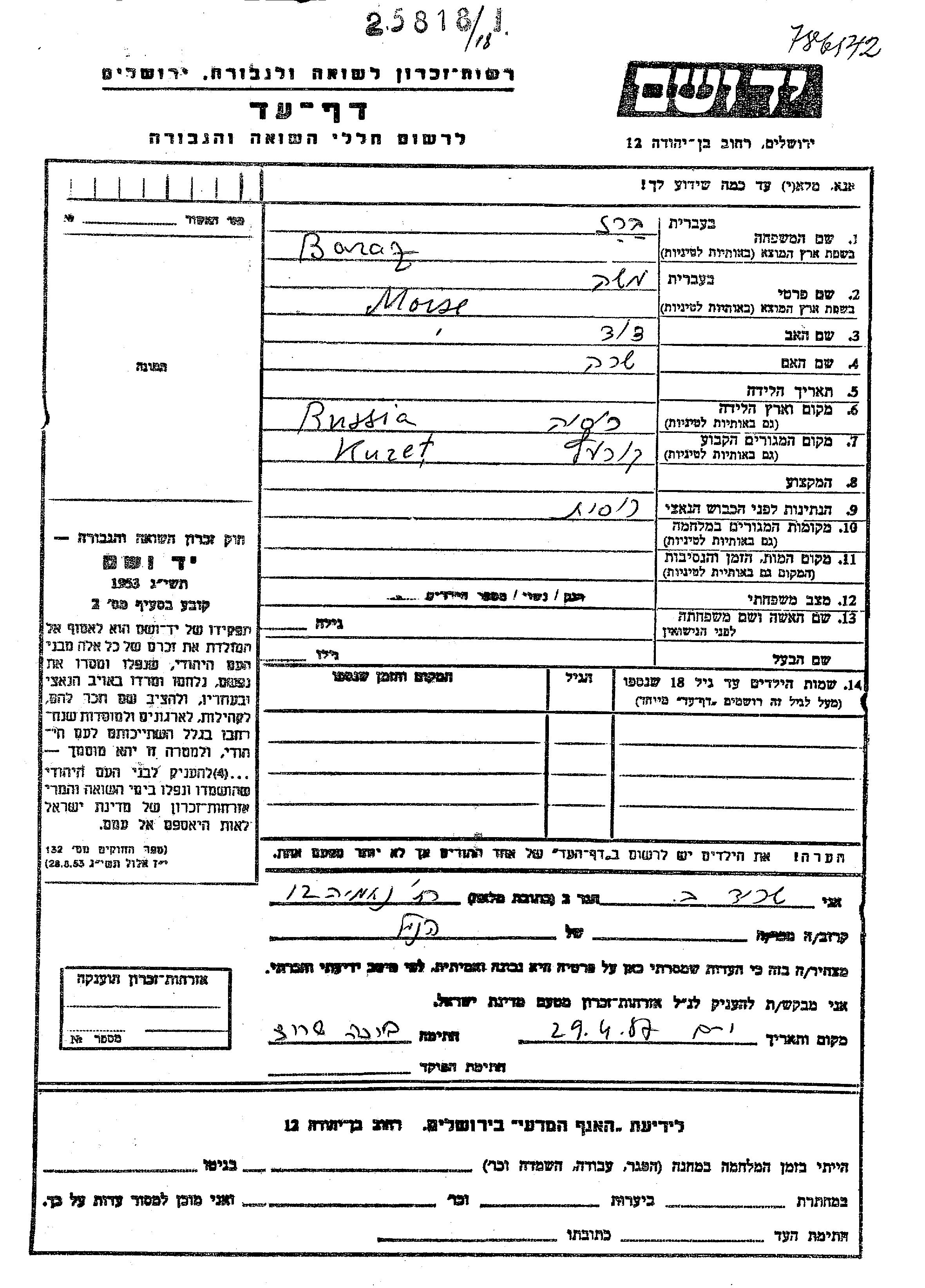 Moshe wurde in der Schoah ermordet. Todesort: Sarny im Jahr 1942.