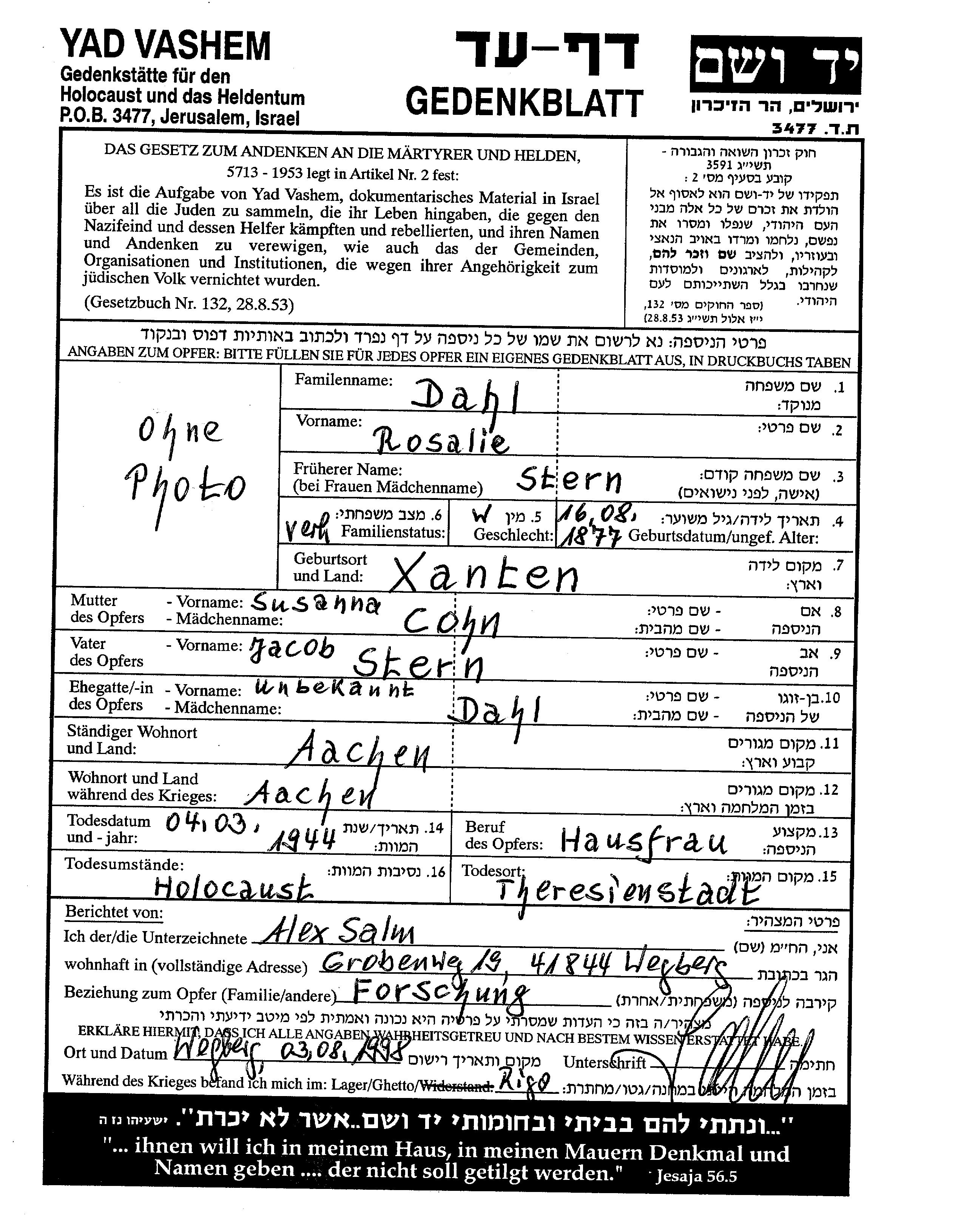 Suche nach einem Todesjahr im Zeitraum der Holocaust: 1933 bis 1945. Bitte wählen Sie 'Exakt' im Auswahlmenü, um nur nach einem einzelnen Jahr zu suchen, alternativ können Sie die flexibleren Optionen '+/- 2 Jahre' oder '+/- 5 Jahre' wählen.