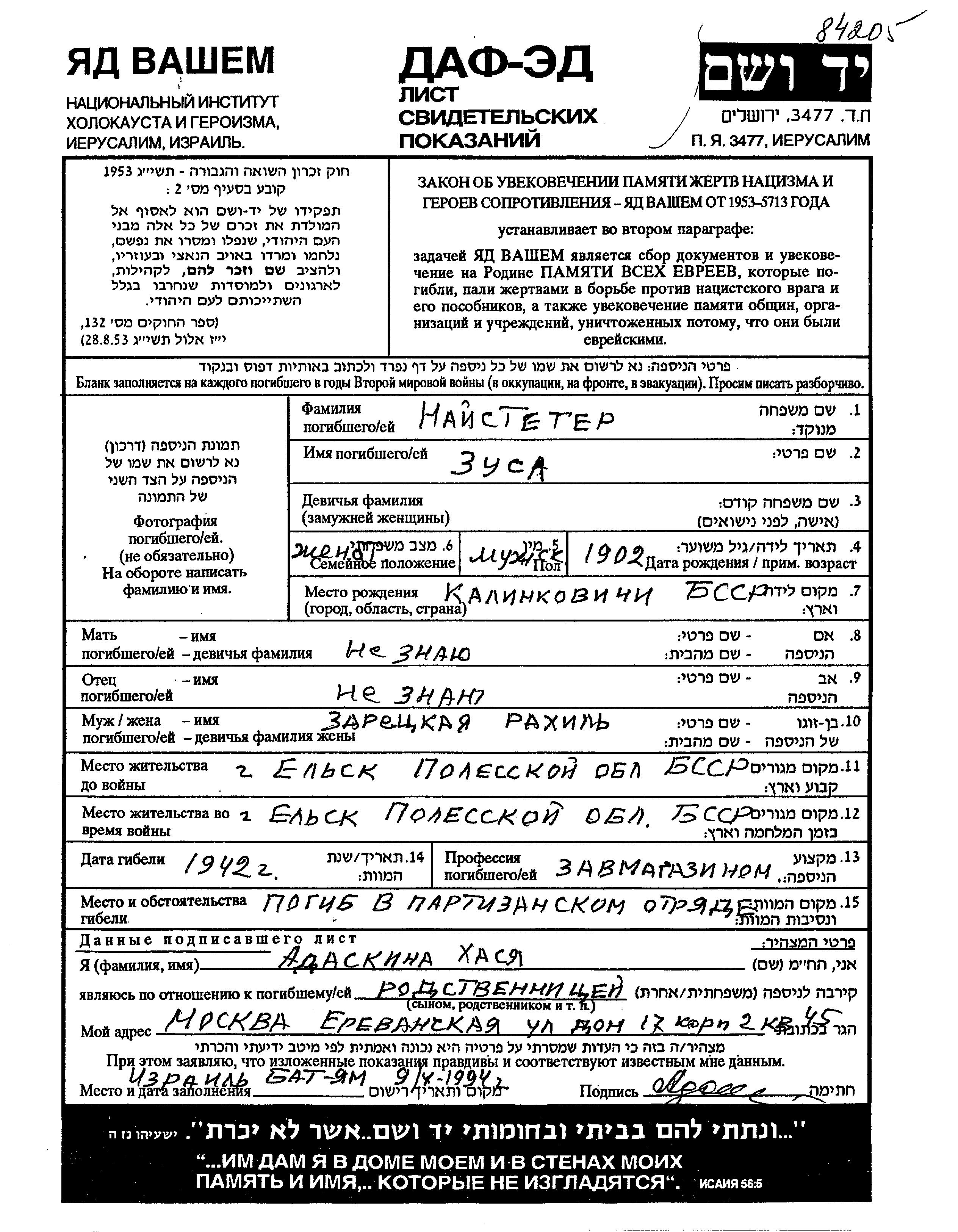 Suche nach einem Todesjahr im Zeitraum der Holocaust: 1933 bis 1945. Bitte wählen Sie 'Exakt' im Auswahlmenü, um nur nach einem einzelnen Jahr zu suchen, alternativ können Sie die flexibleren Optionen '+/- 2 Jahre' oder '+/- 5 Jahre' wählen.