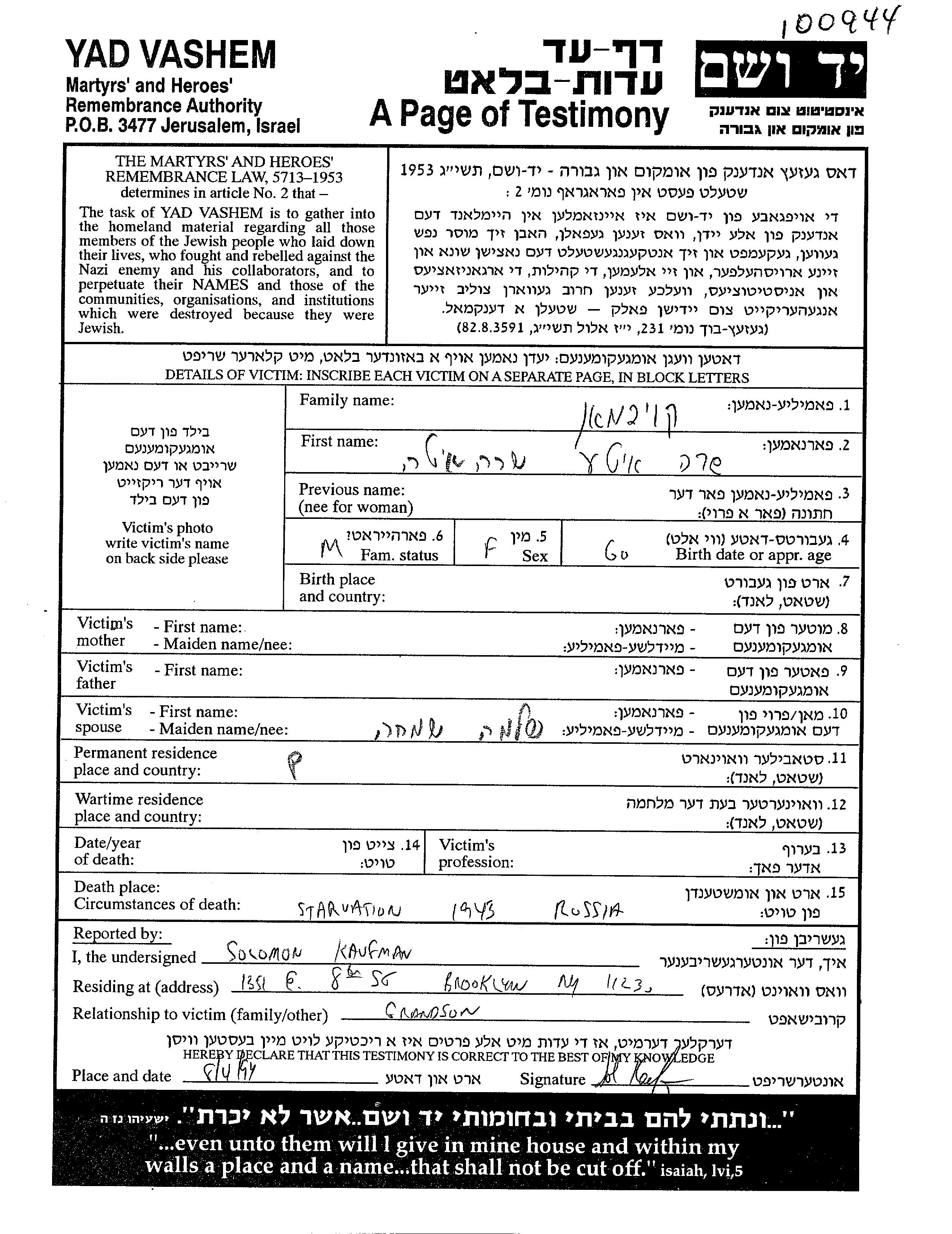 Suche nach einem Todesjahr im Zeitraum der Holocaust: 1933 bis 1945. Bitte wählen Sie 'Exakt' im Auswahlmenü, um nur nach einem einzelnen Jahr zu suchen, alternativ können Sie die flexibleren Optionen '+/- 2 Jahre' oder '+/- 5 Jahre' wählen.