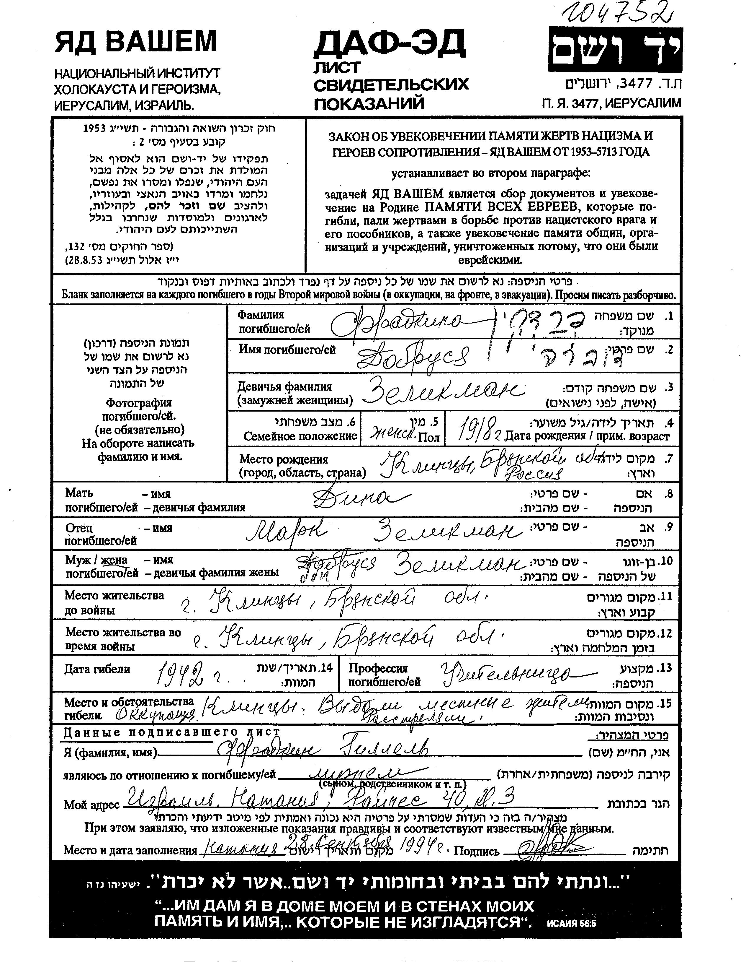 Dobrusia wurde in der Schoah ermordet. Todesort: Klintsy, Russland (UdSSR) im Jahr 1942.