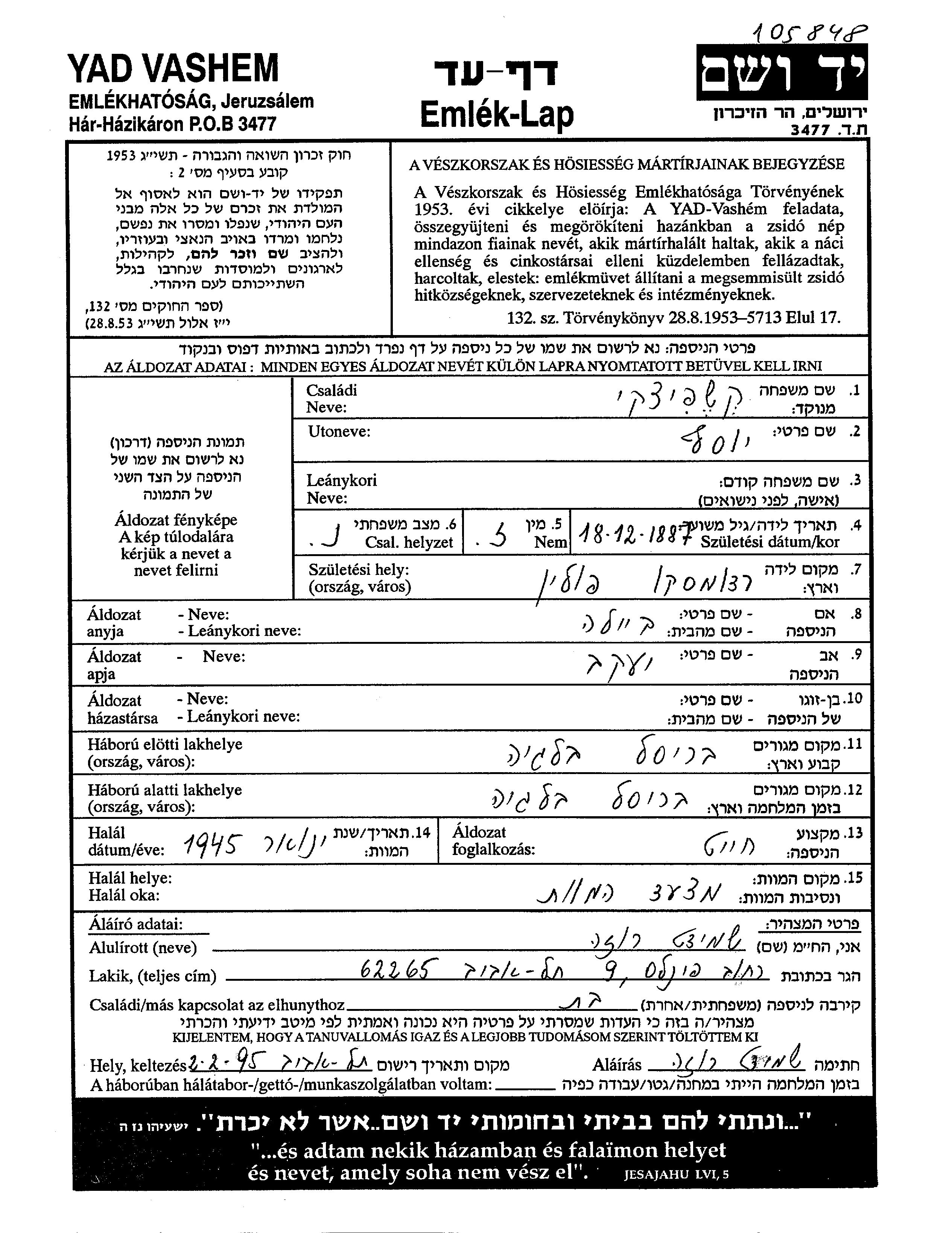 Yosef wurde in der Schoah ermordet. Todesort: unbekannt im Jahr 1945.