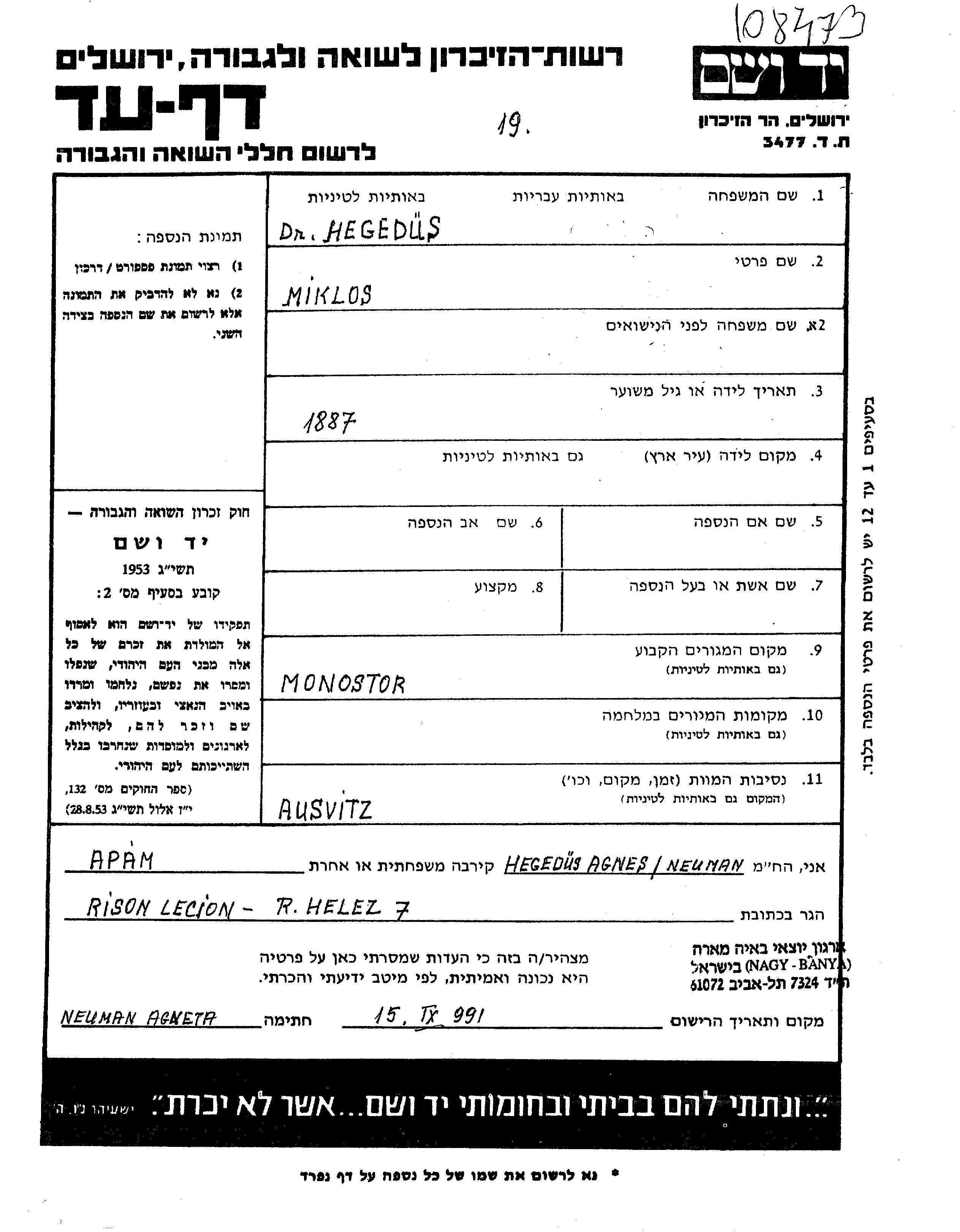 Dr. Hegedus wurde in der Schoah ermordet. Todesort: Auschwitz, Polen.