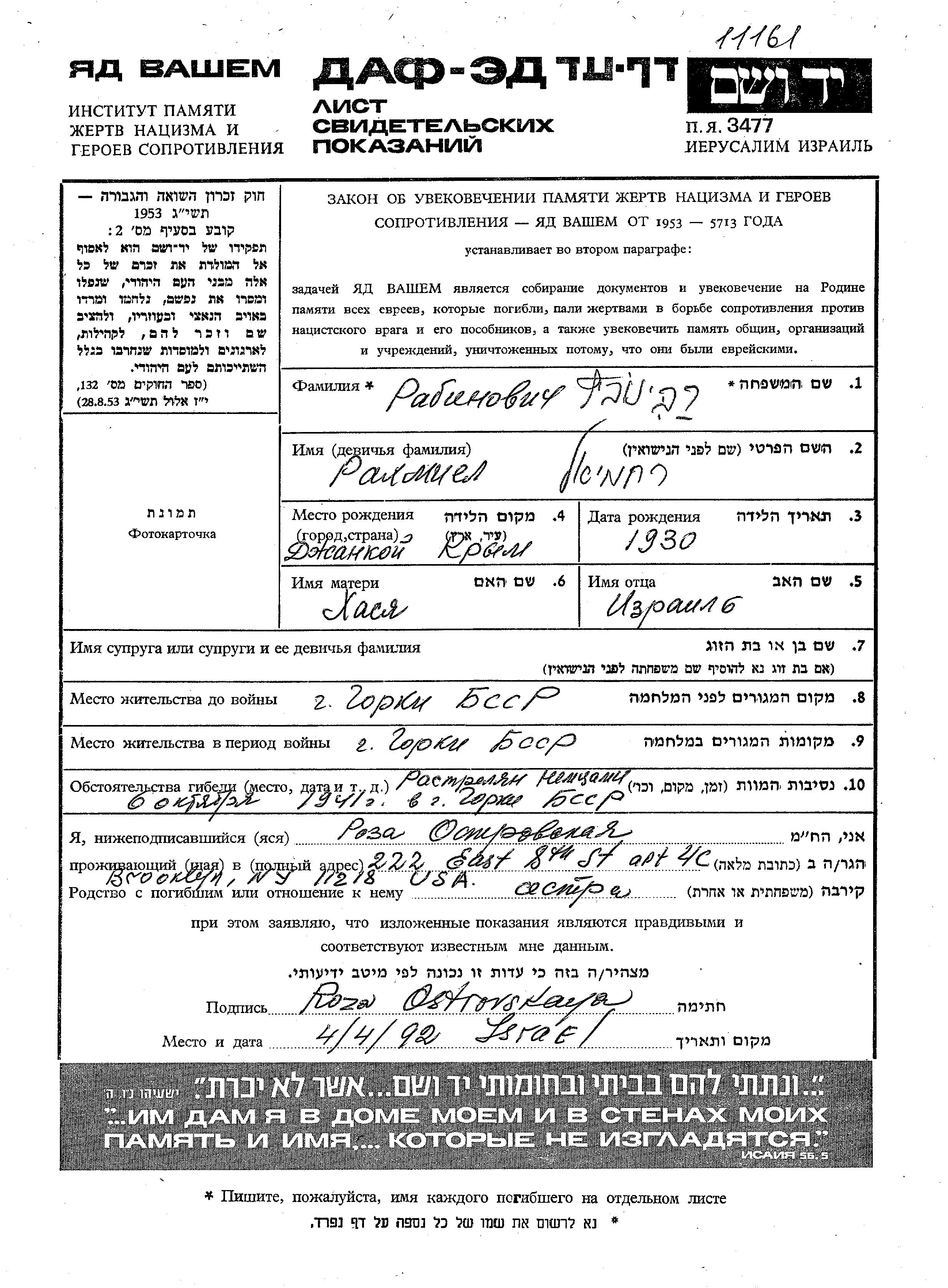 Rabinovich Rakhmiel 1930 Gorki, Weißrussland (UdSSR) Gedenkblatt