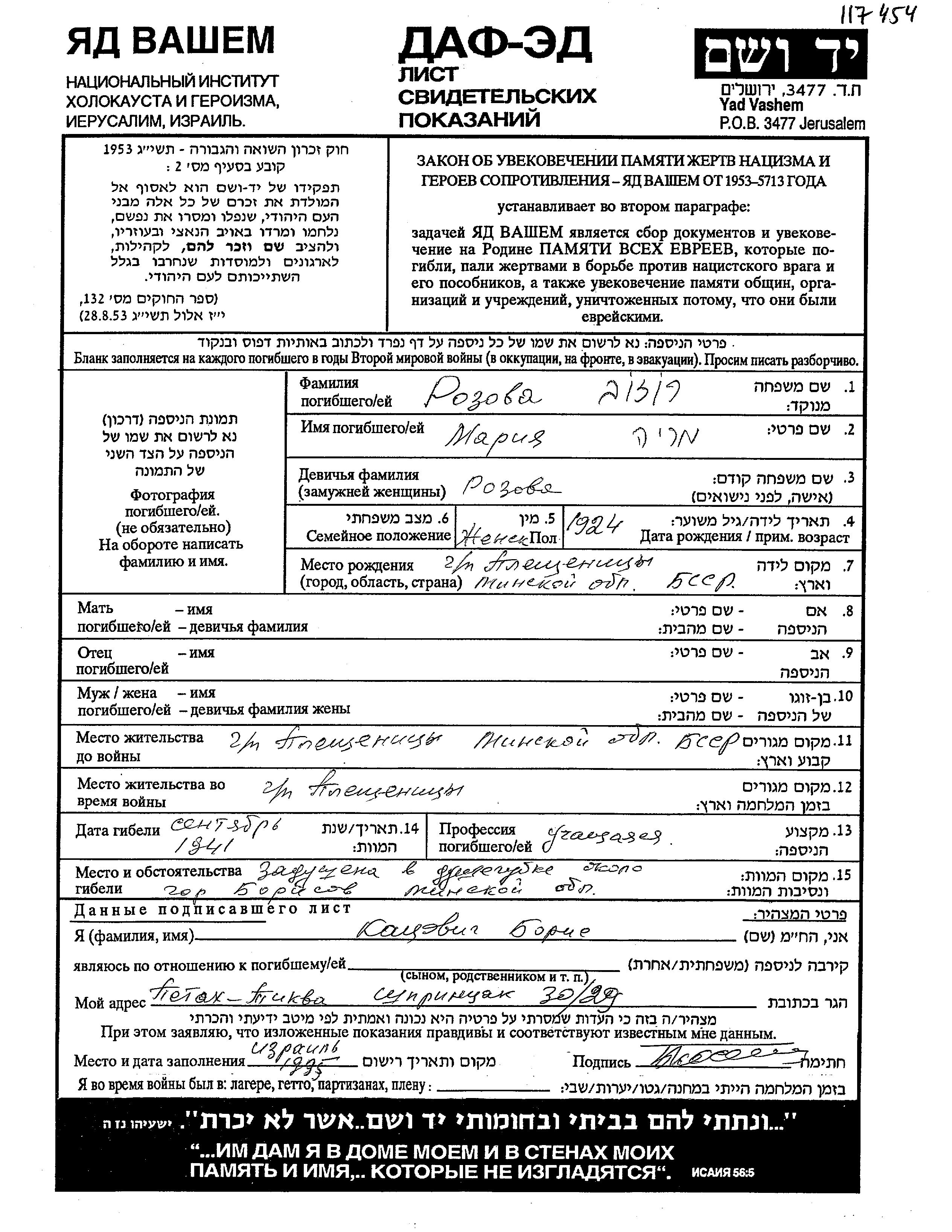 Rozov Maria 1924 Pleshchenitsy, Weißrussland (UdSSR) Gedenkblatt