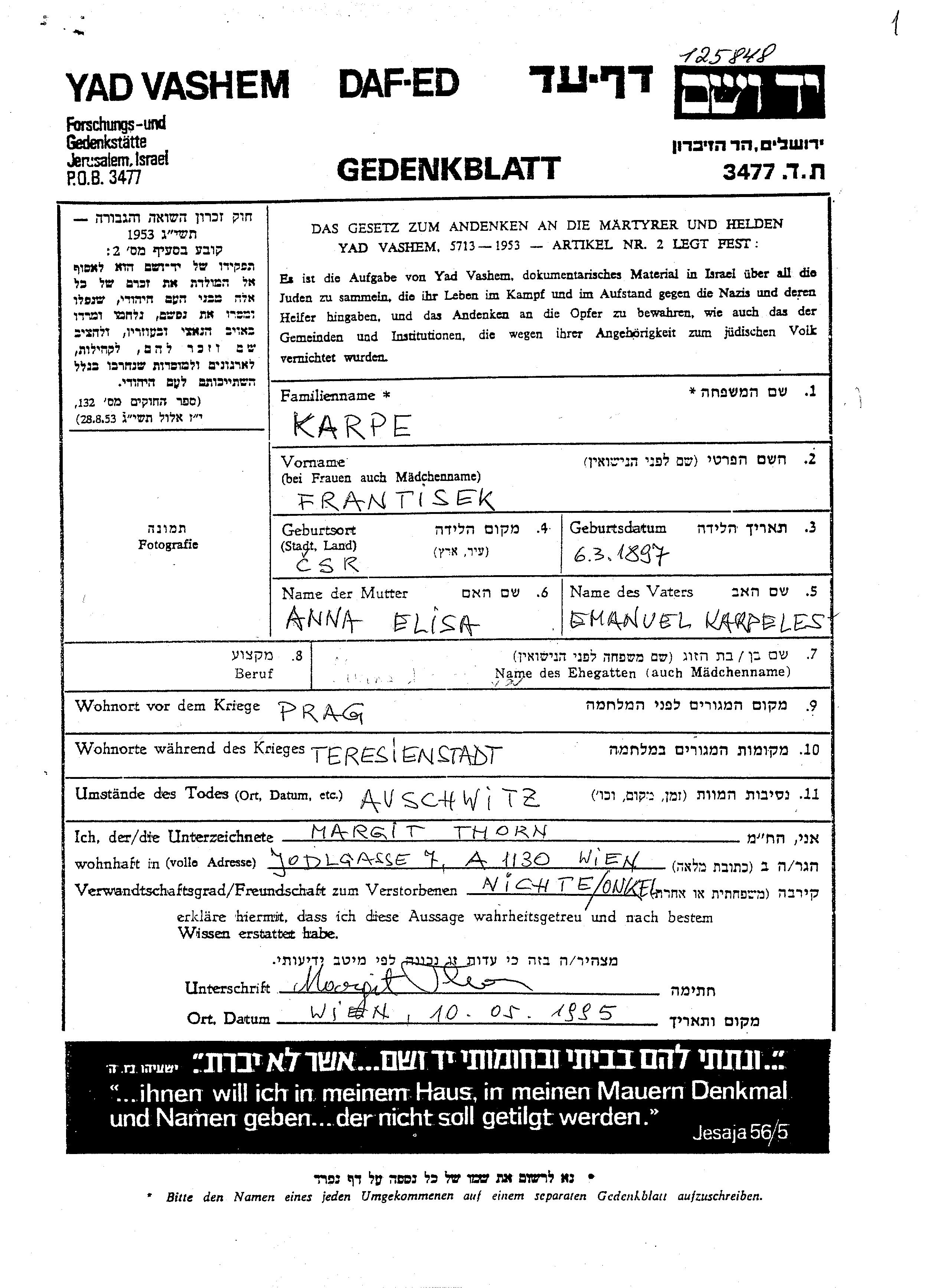 Frantisek wurde in der Schoah ermordet. Todesort: Auschwitz, Polen.