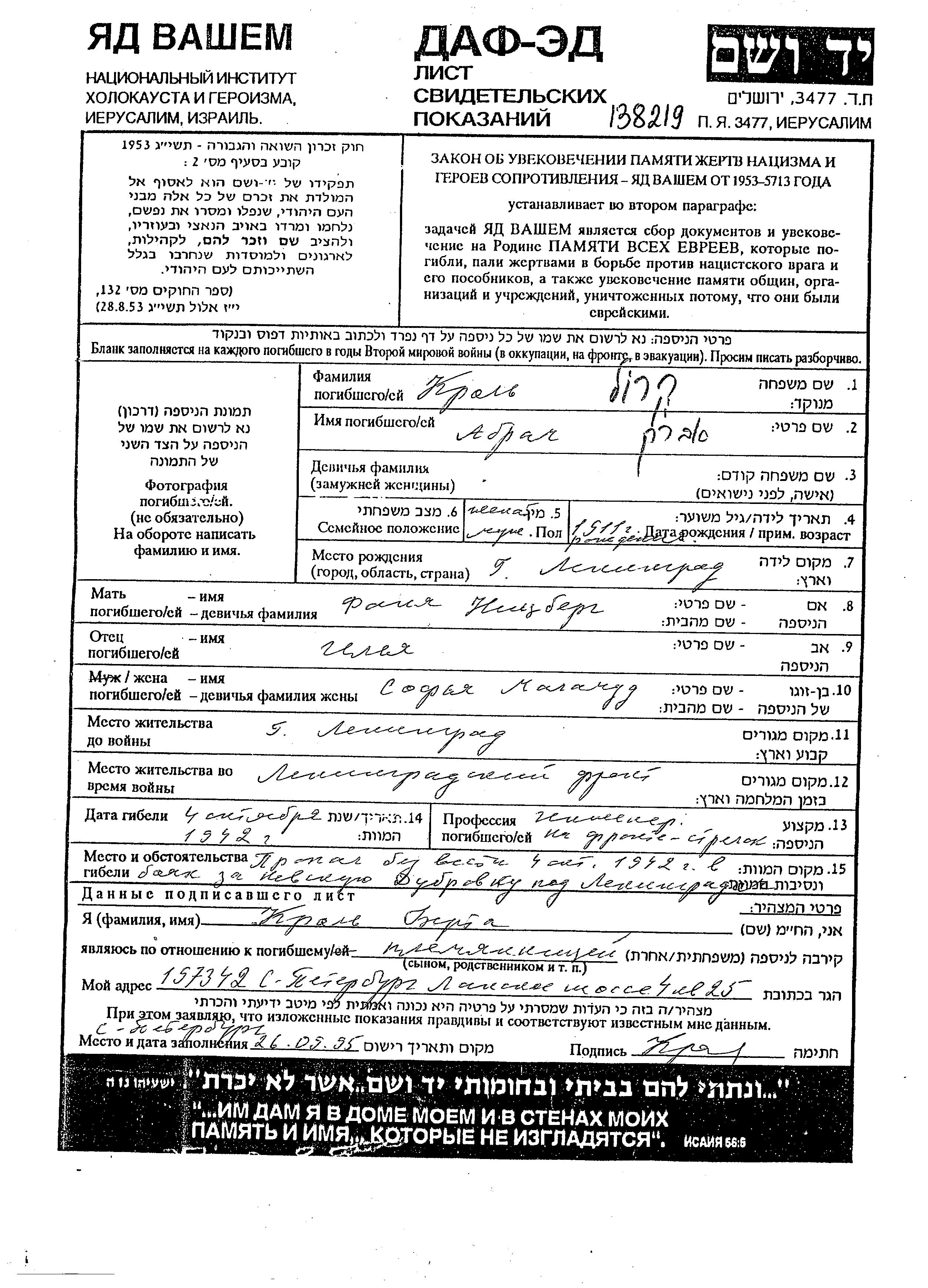 Abram wurde in der Schoah ermordet. Todesort: Leningrad, Russland (UdSSR) im Jahr 04/10/1942.