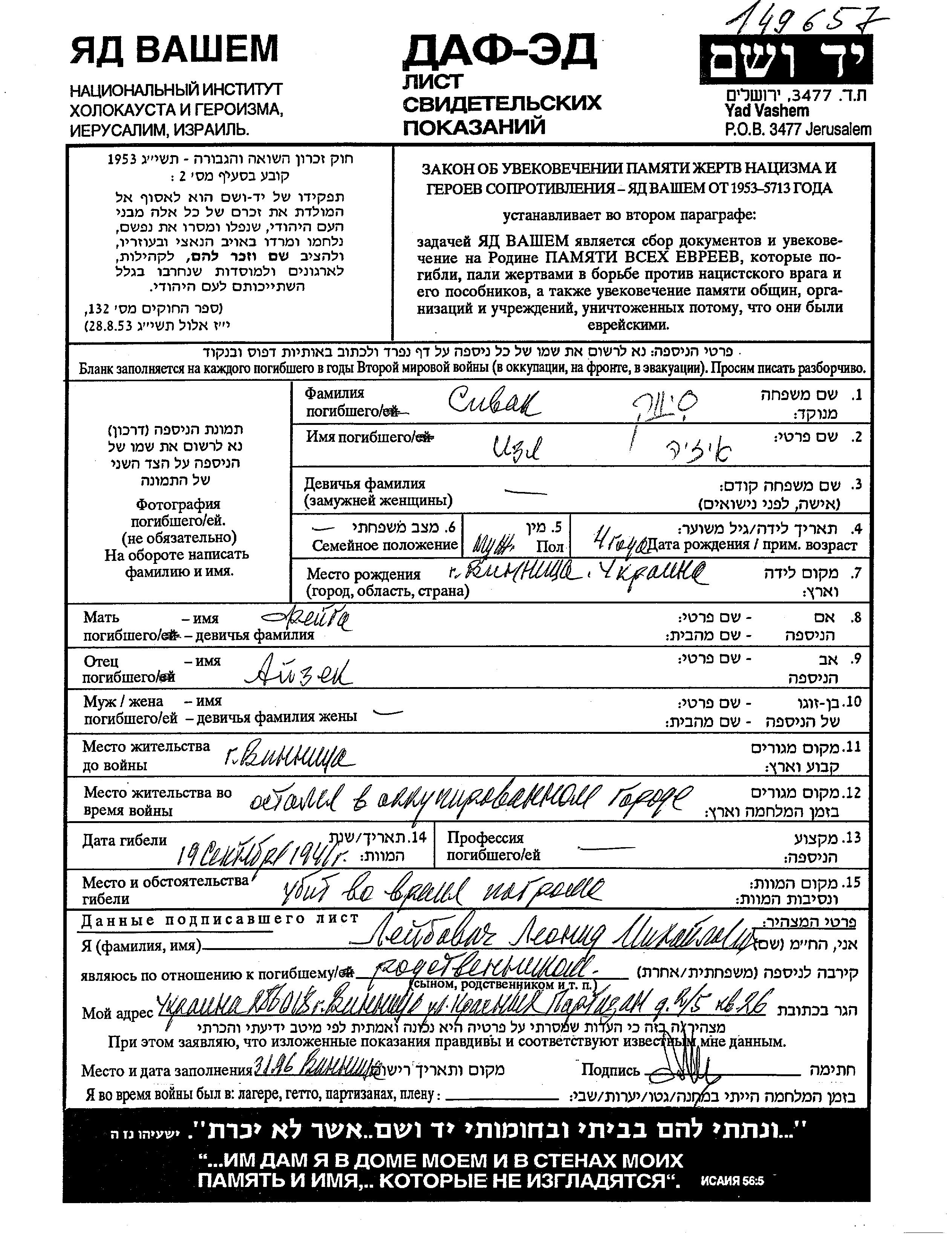 Izia wurde in der Schoah ermordet. Todesort: Vinnitsa, Ukraine (UdSSR) im Jahr 19/09/1941.