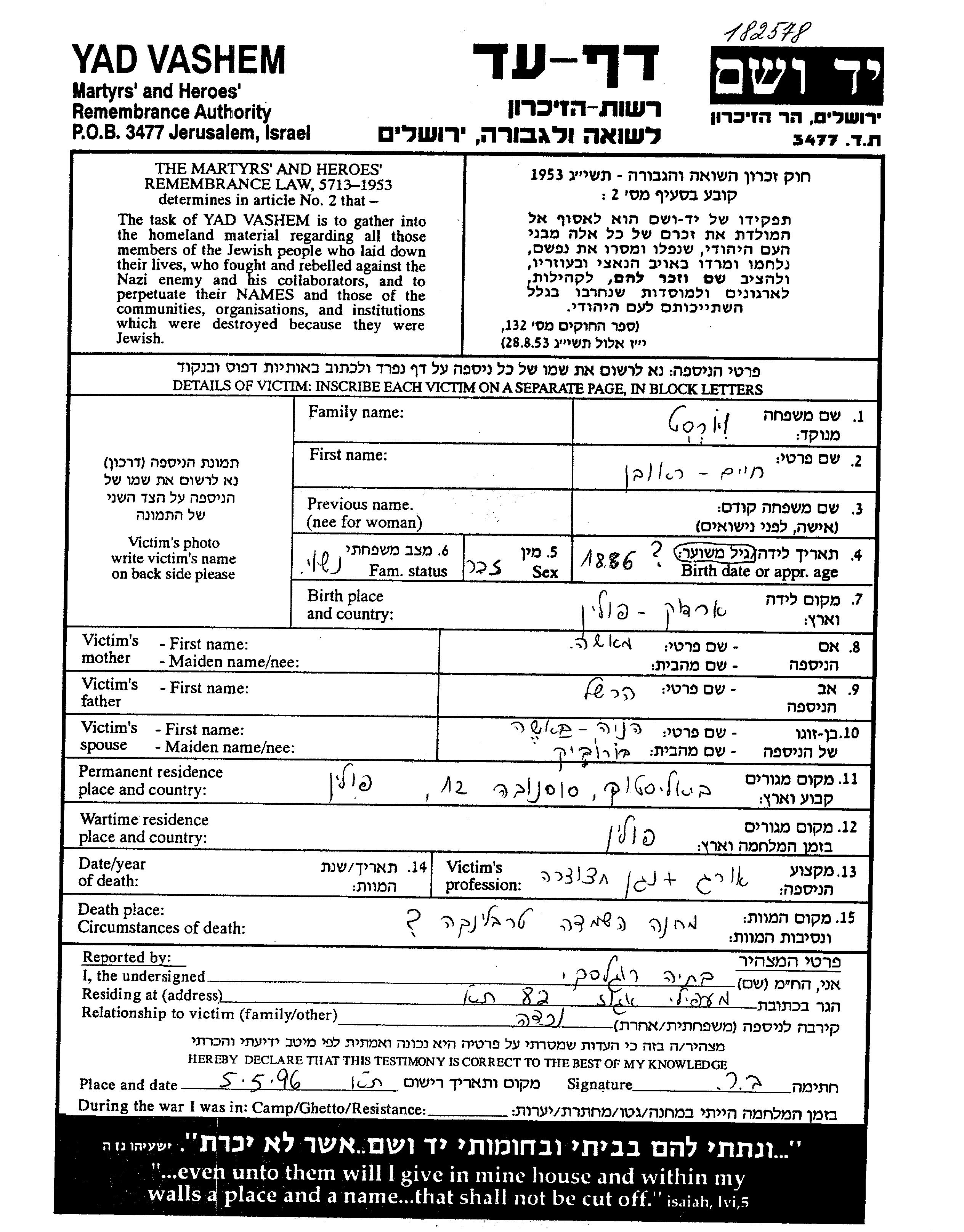 Reuven Khaim wurde in der Schoah ermordet. Todesort: Treblinka, Polen.