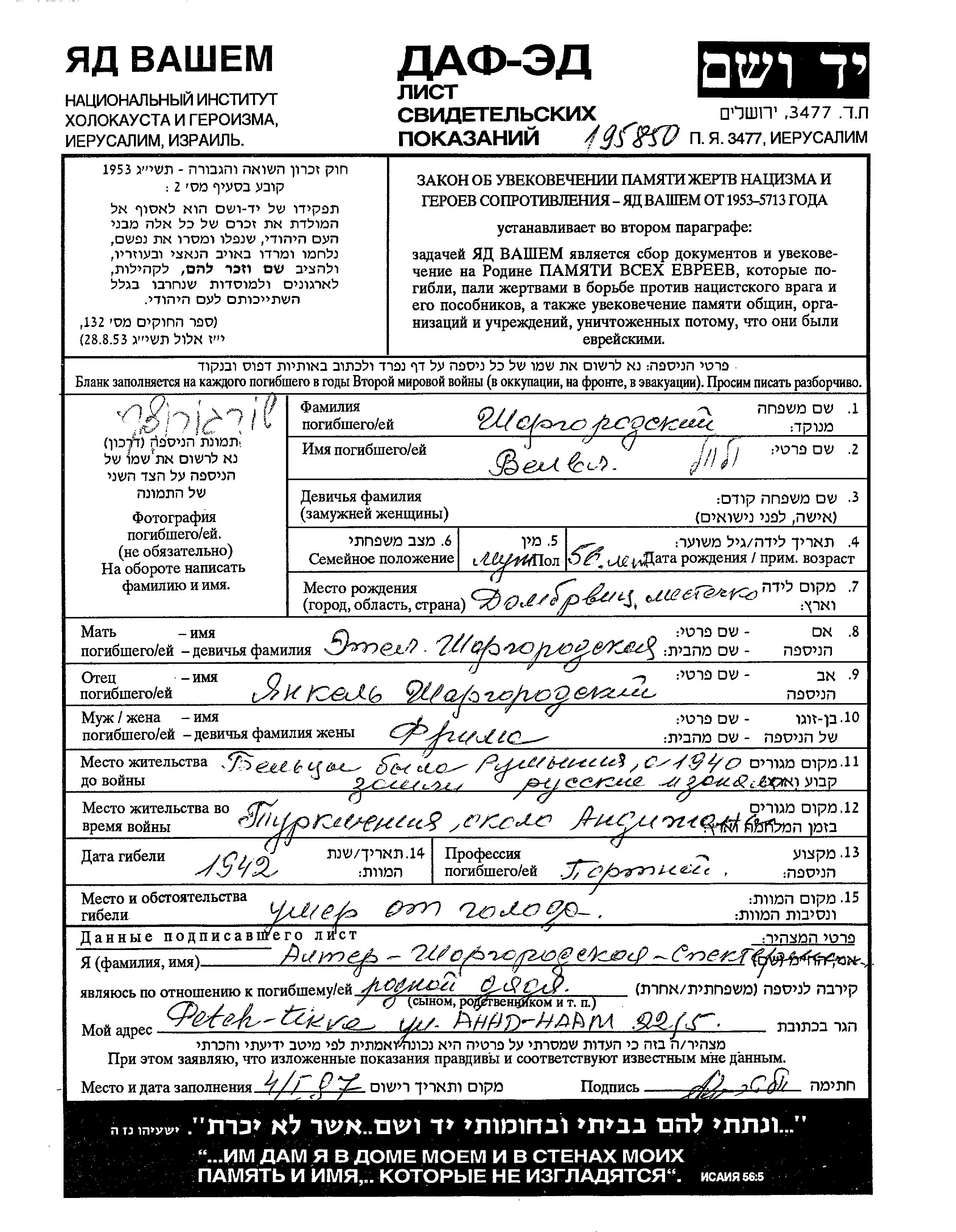 Suche nach einem Todesjahr im Zeitraum der Holocaust: 1933 bis 1945. Bitte wählen Sie 'Exakt' im Auswahlmenü, um nur nach einem einzelnen Jahr zu suchen, alternativ können Sie die flexibleren Optionen '+/- 2 Jahre' oder '+/- 5 Jahre' wählen.