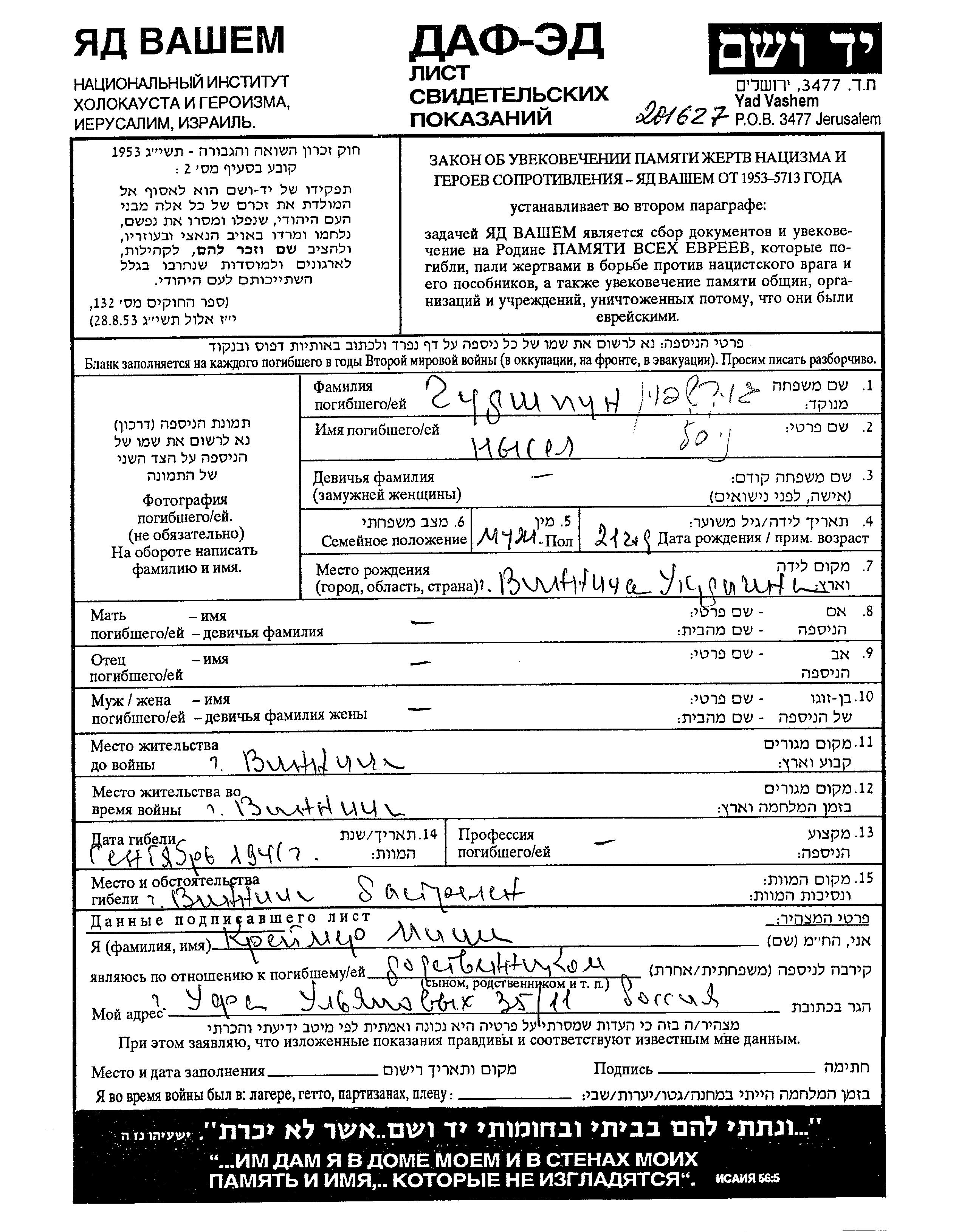 Nysel wurde in der Schoah ermordet. Todesort: Vinnitsa, Ukraine (UdSSR) im Jahr 1941.