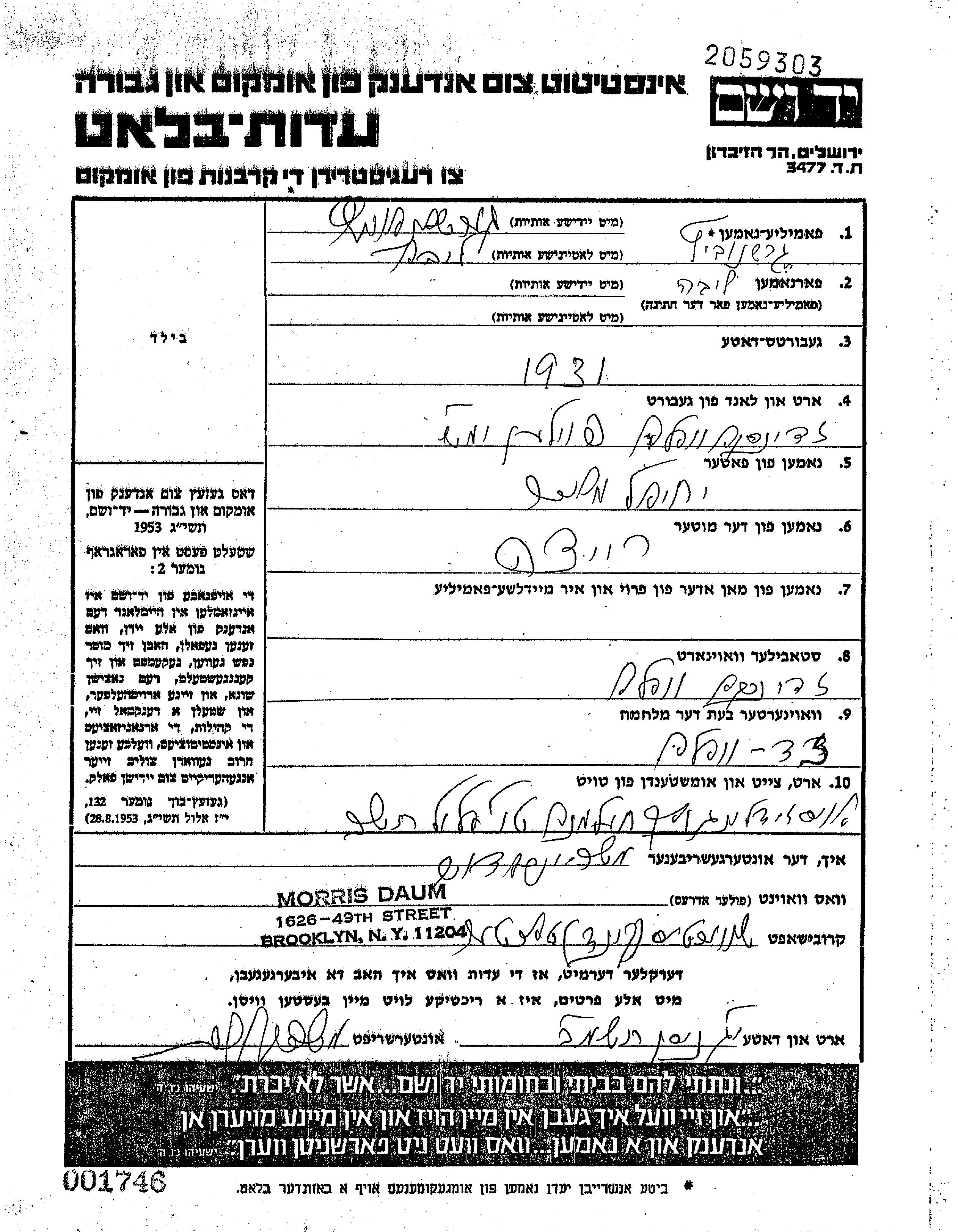 Gerszenowicz Liba 1931 Zdunska Wola, Polen Gedenkblatt