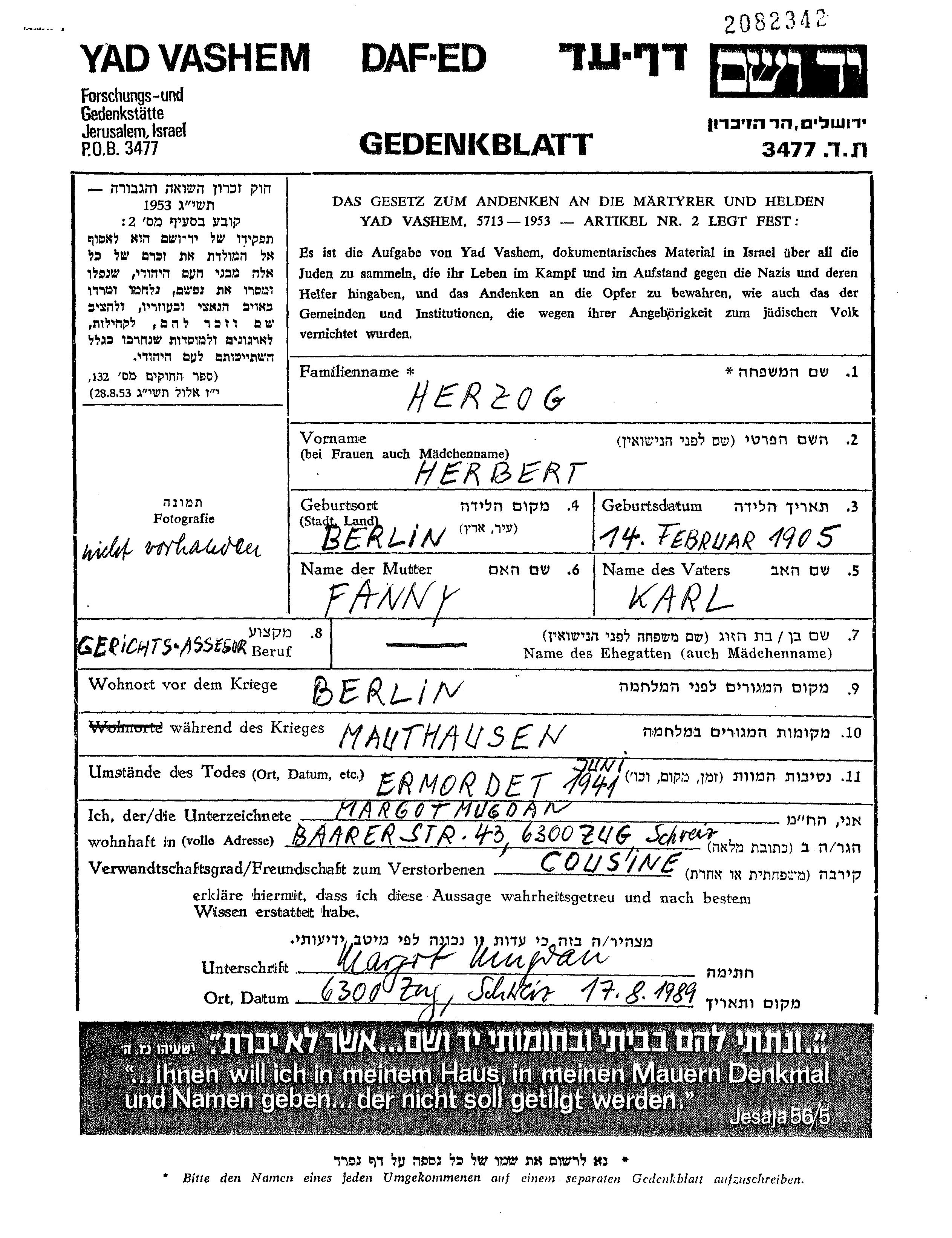 Herbert wurde in der Schoah ermordet. Todesort: Mauthausen, Österreich im Jahr 1941.