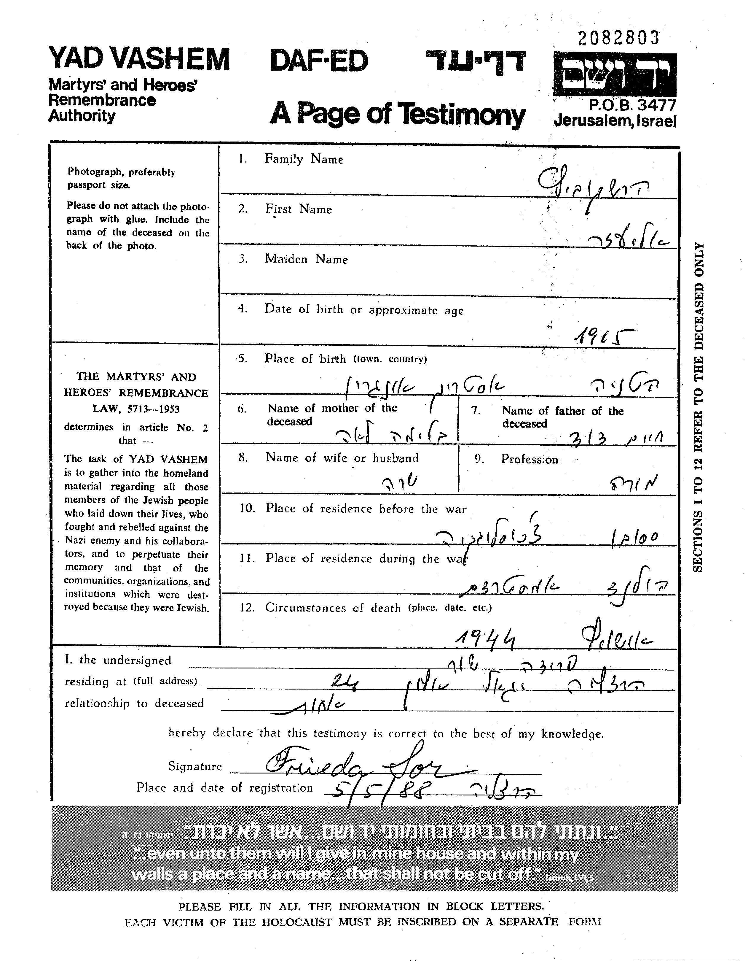 Eliezer wurde in der Schoah ermordet. Todesort: Auschwitz, Polen im Jahr 1944.