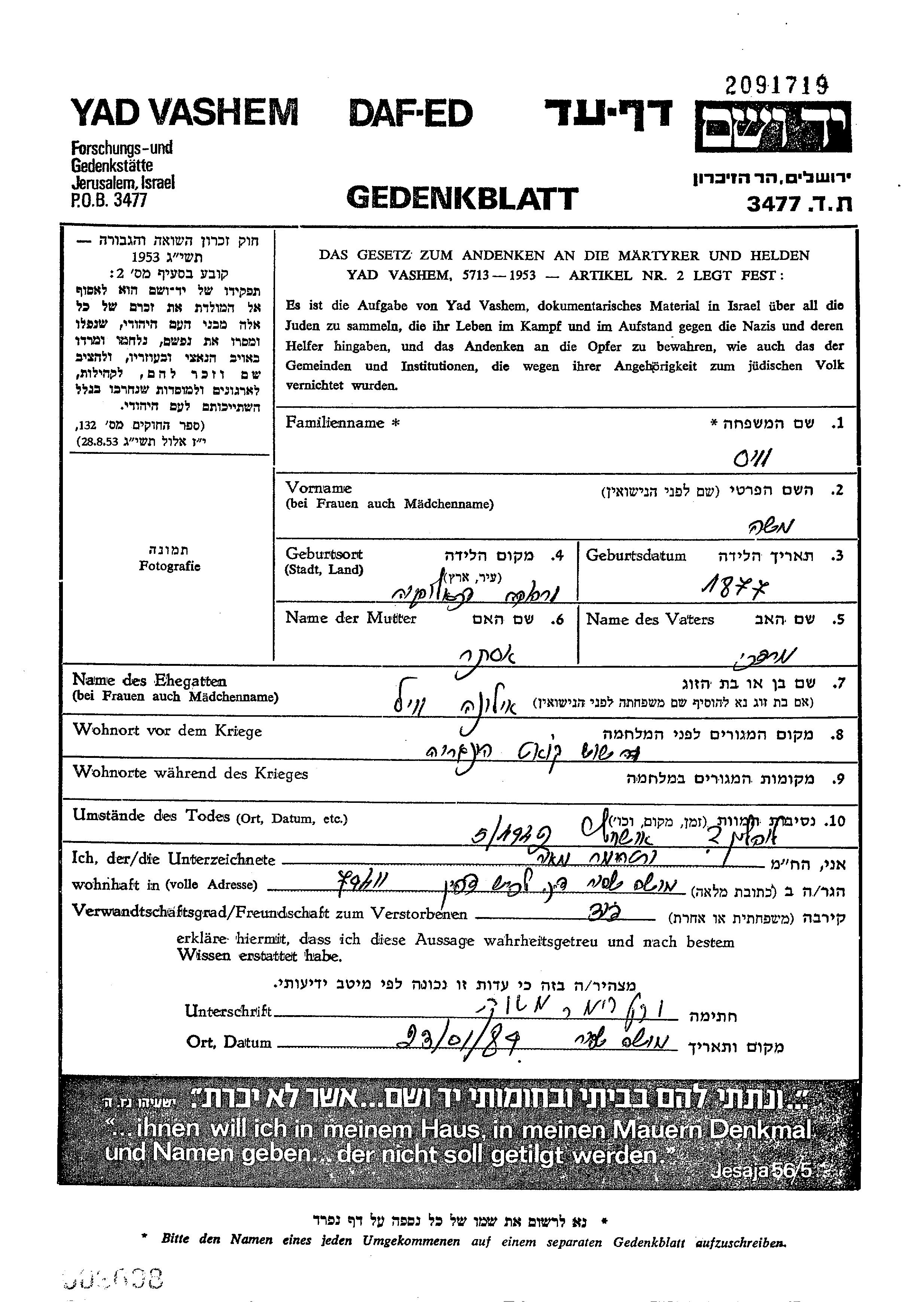 Moshe wurde in der Schoah ermordet. Todesort: Auschwitz, Polen im Jahr 1942.