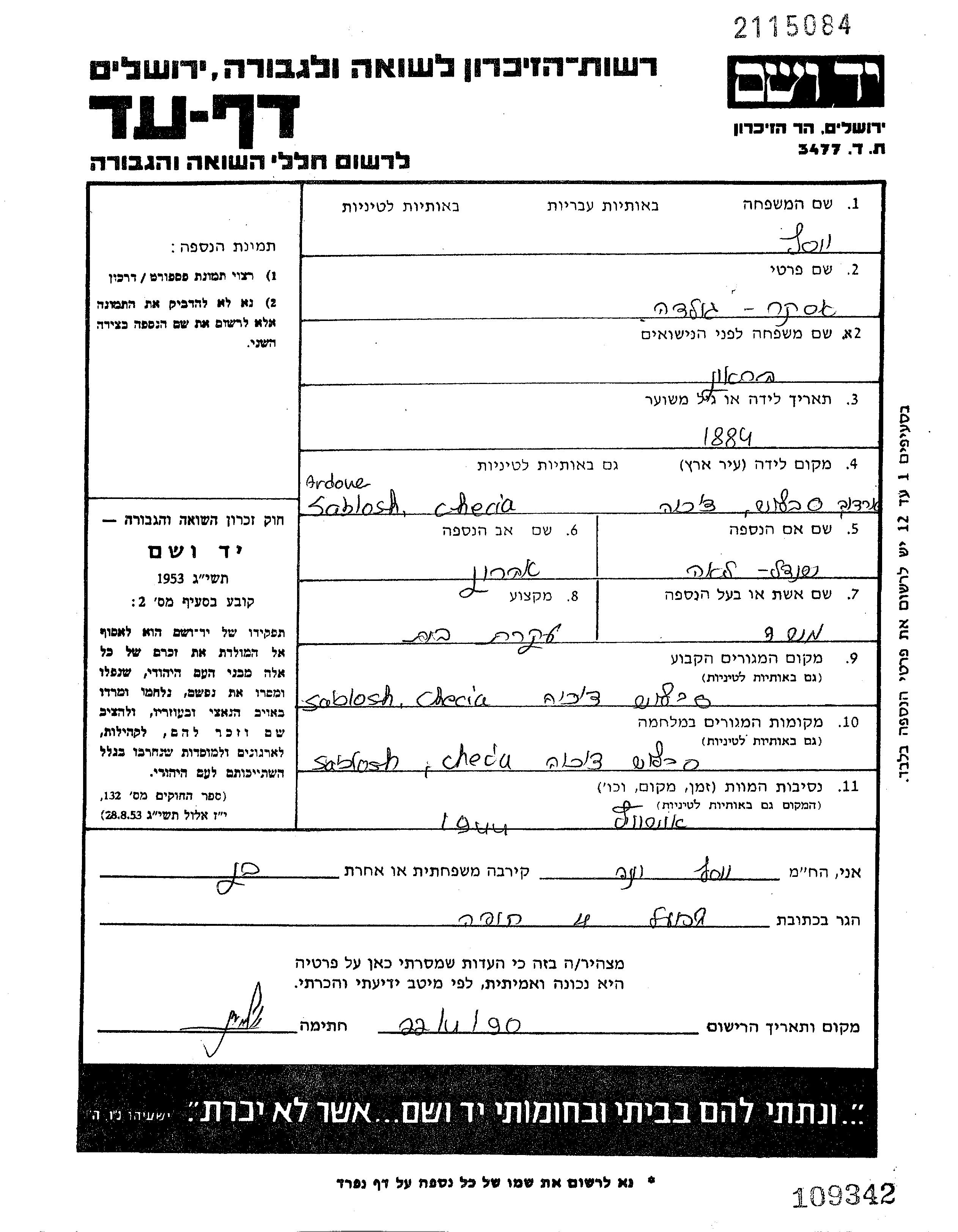 Iosef Golda Ester 1884 Sevlus, Tschechoslowakei Gedenkblatt