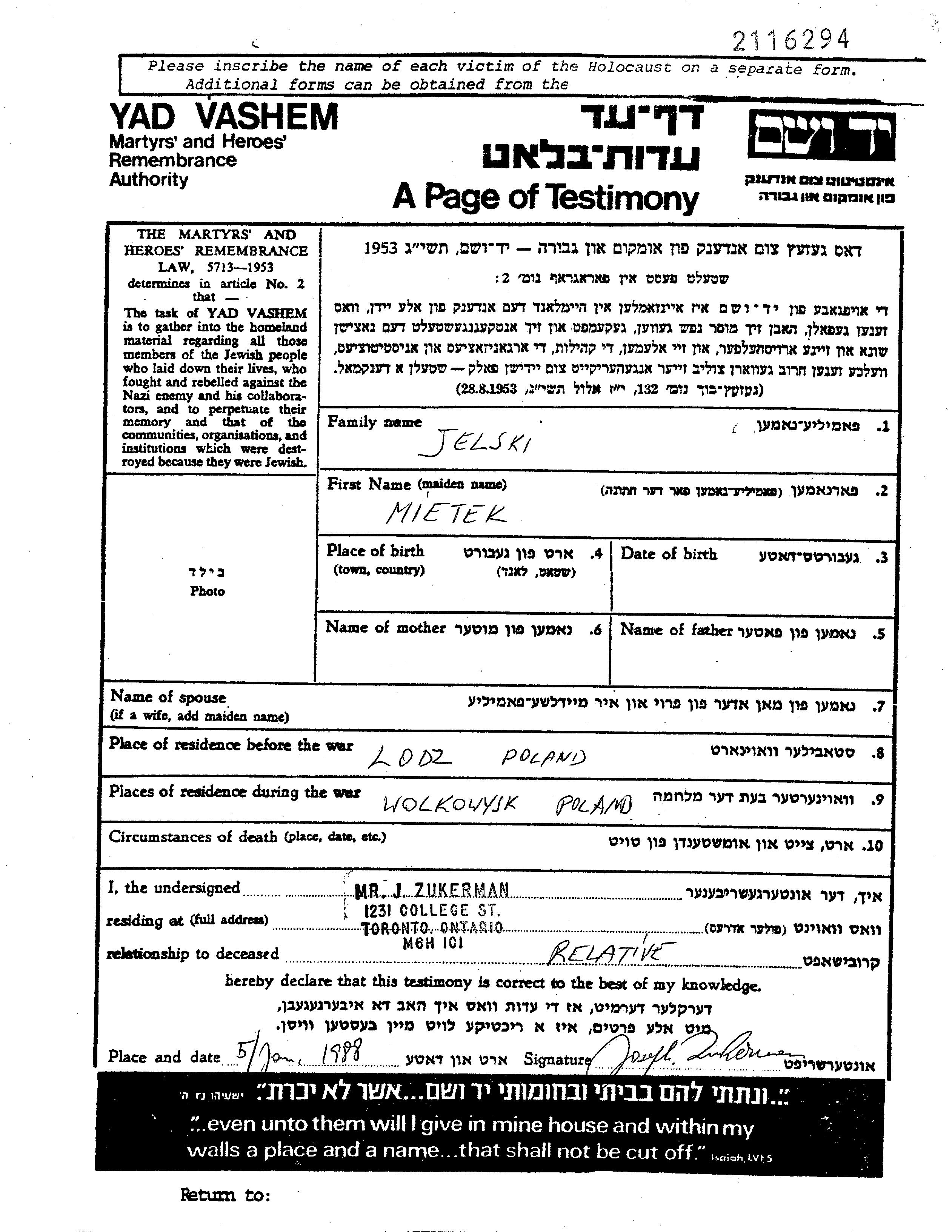 Mietek Jelski. Vor dem Zweiten Weltkrieg lebte er in Lodz, Polen. Während des Krieges war er in Wolkowysk, Polen.