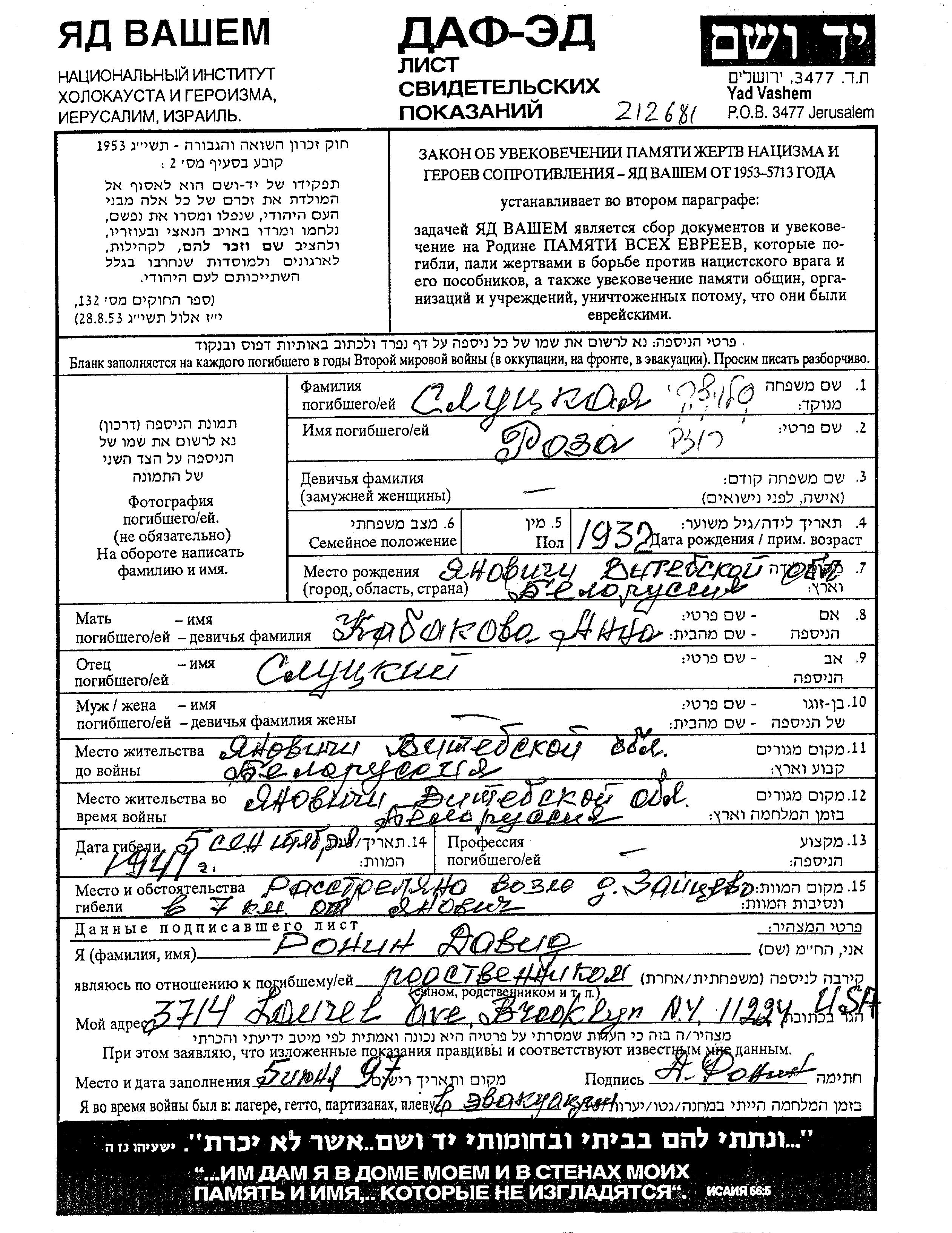Roza wurde in der Schoah ermordet. Todesort: Zaytsevo, Weißrussland (UdSSR) im Jahr 05/09/1941.