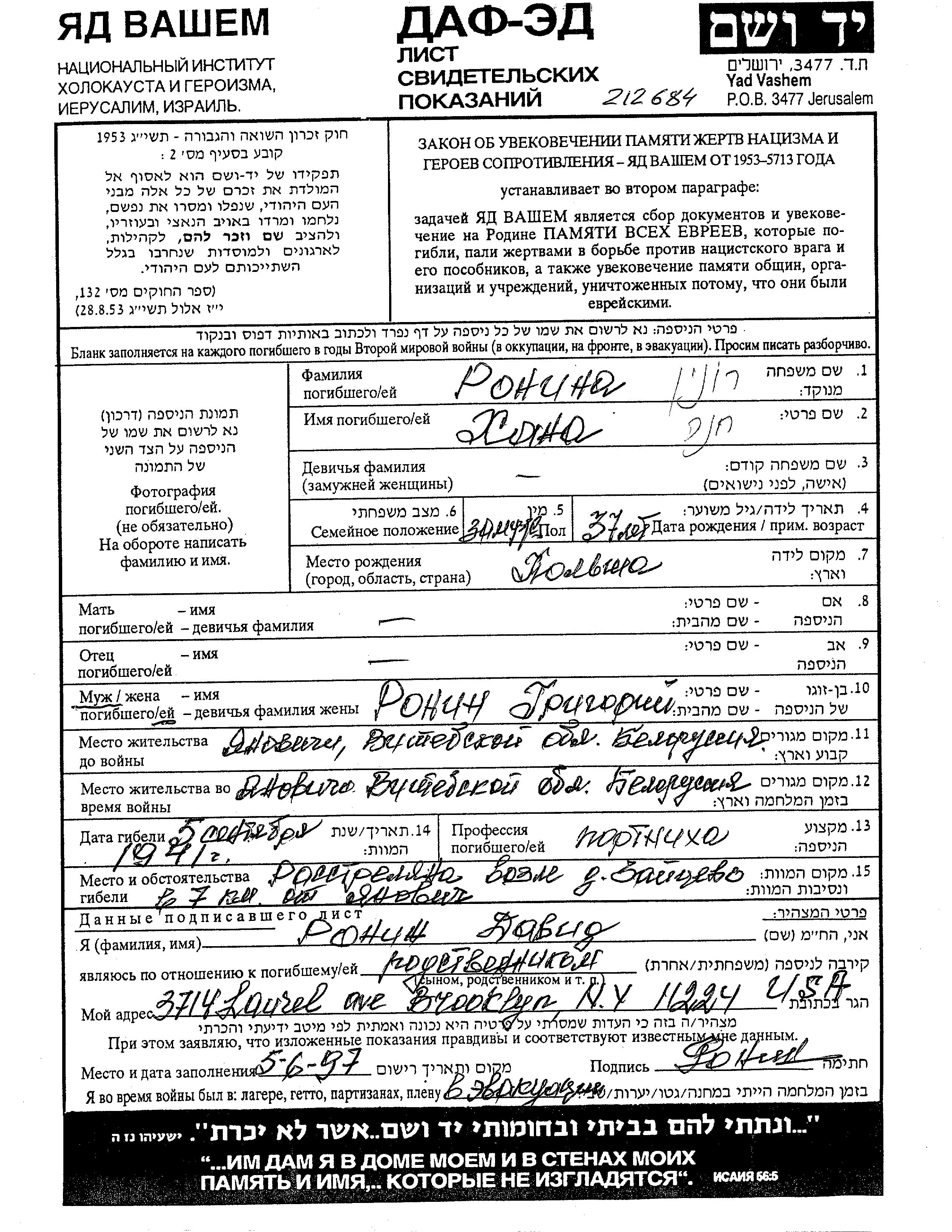 Khana wurde in der Schoah ermordet. Todesort: Zaytsevo, Weißrussland (UdSSR) im Jahr 05/09/1941.
