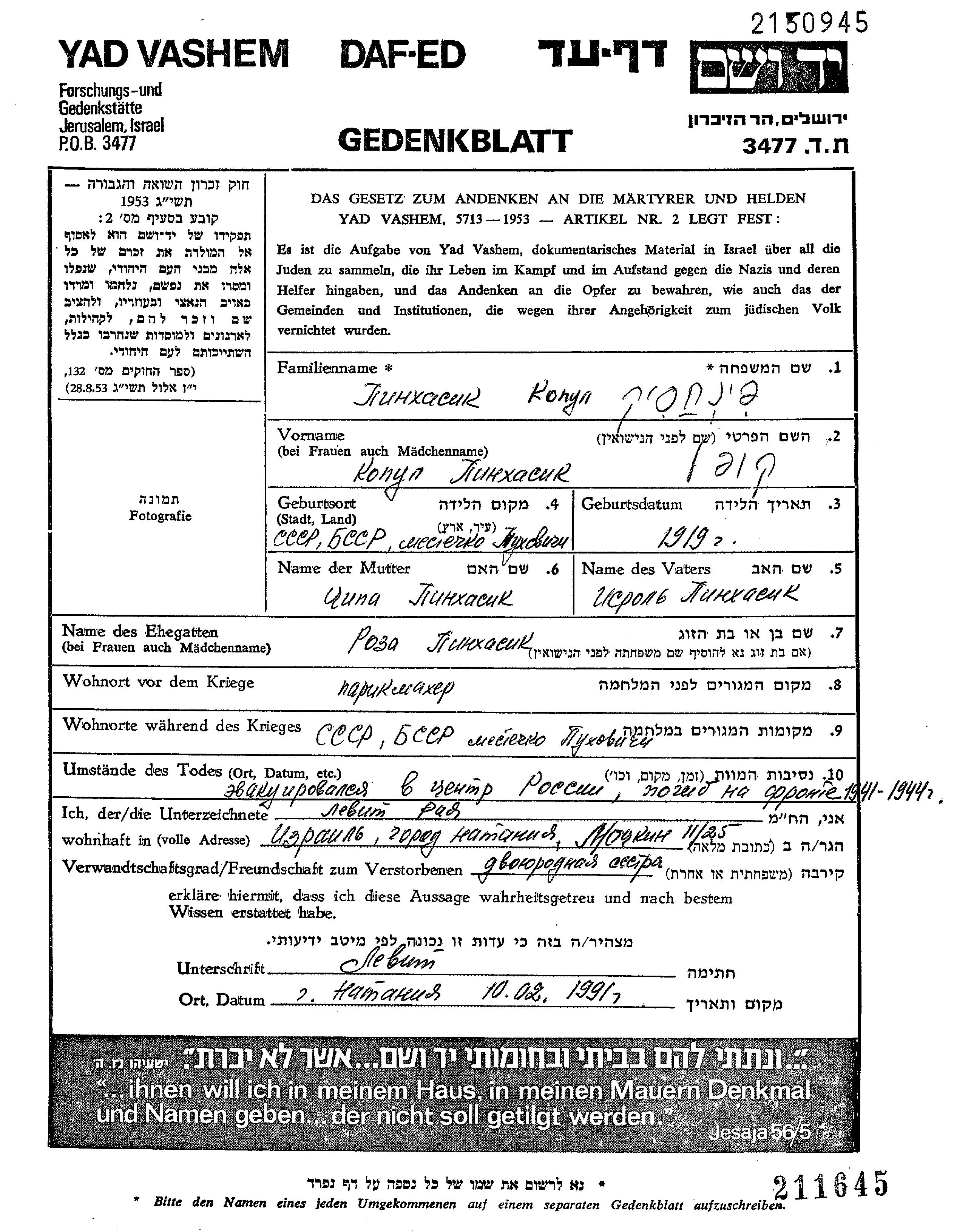 Suche nach einem Todesjahr im Zeitraum der Holocaust: 1933 bis 1945. Bitte wählen Sie 'Exakt' im Auswahlmenü, um nur nach einem einzelnen Jahr zu suchen, alternativ können Sie die flexibleren Optionen '+/- 2 Jahre' oder '+/- 5 Jahre' wählen.
