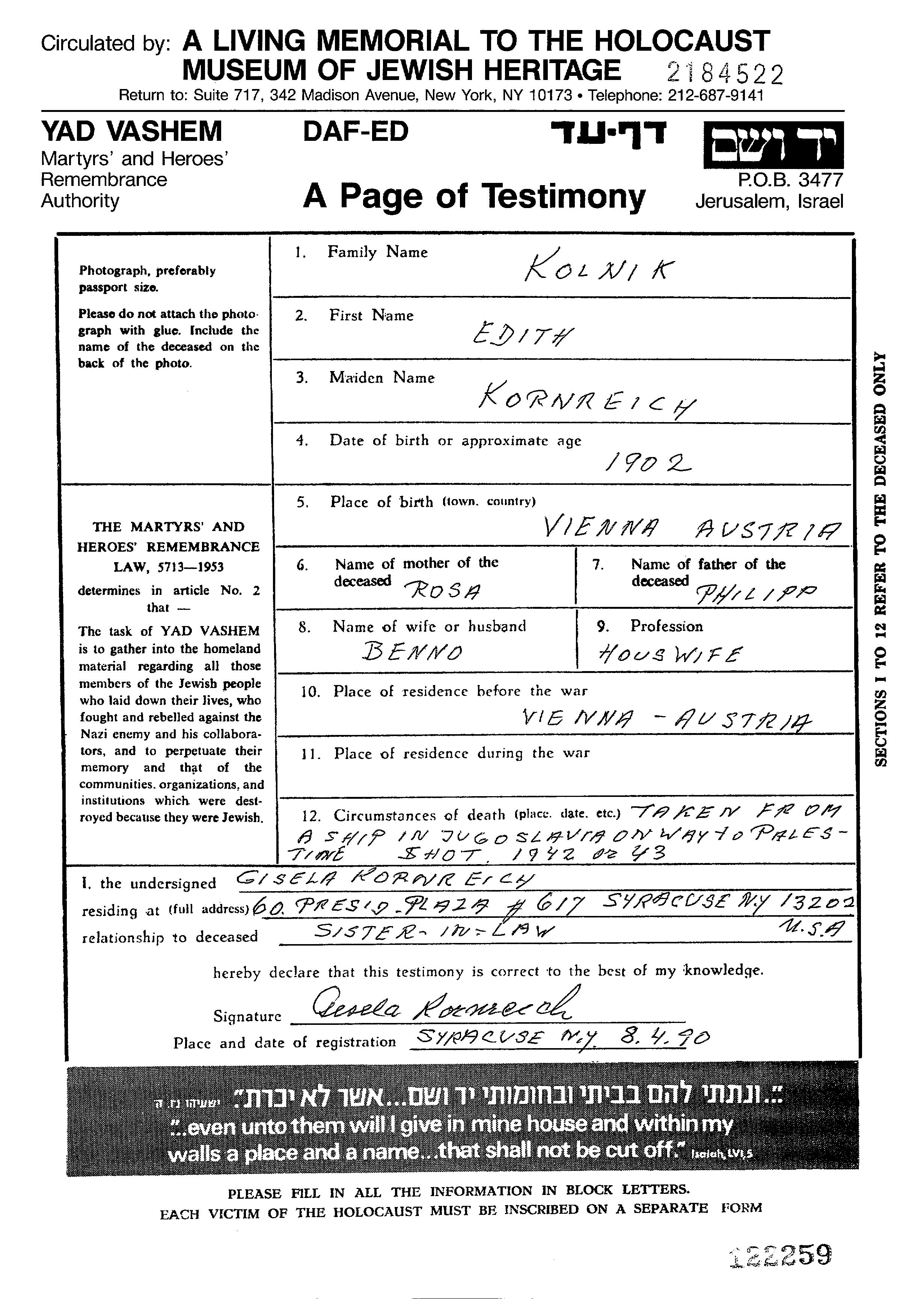 Juden wurden in der Schoah auf verschiedenste Weisen ermordet, unter anderem: Vergasen, Erschiessen, lebendig verbrannt werden, lebendig begraben werden, Tod durch Erschöpfung durch Zwangsarbeit, Epidemien, mangels jeder hygienischer Bedingung oder dem Fehlen medizinischer Versorgung. Manche Juden nahmen sich das Leben, um der Festnahme und weiterer Verfolgung zu entgehen oder ihr hoffnungsloses, nicht nachlassendes Leiden zu beenden.