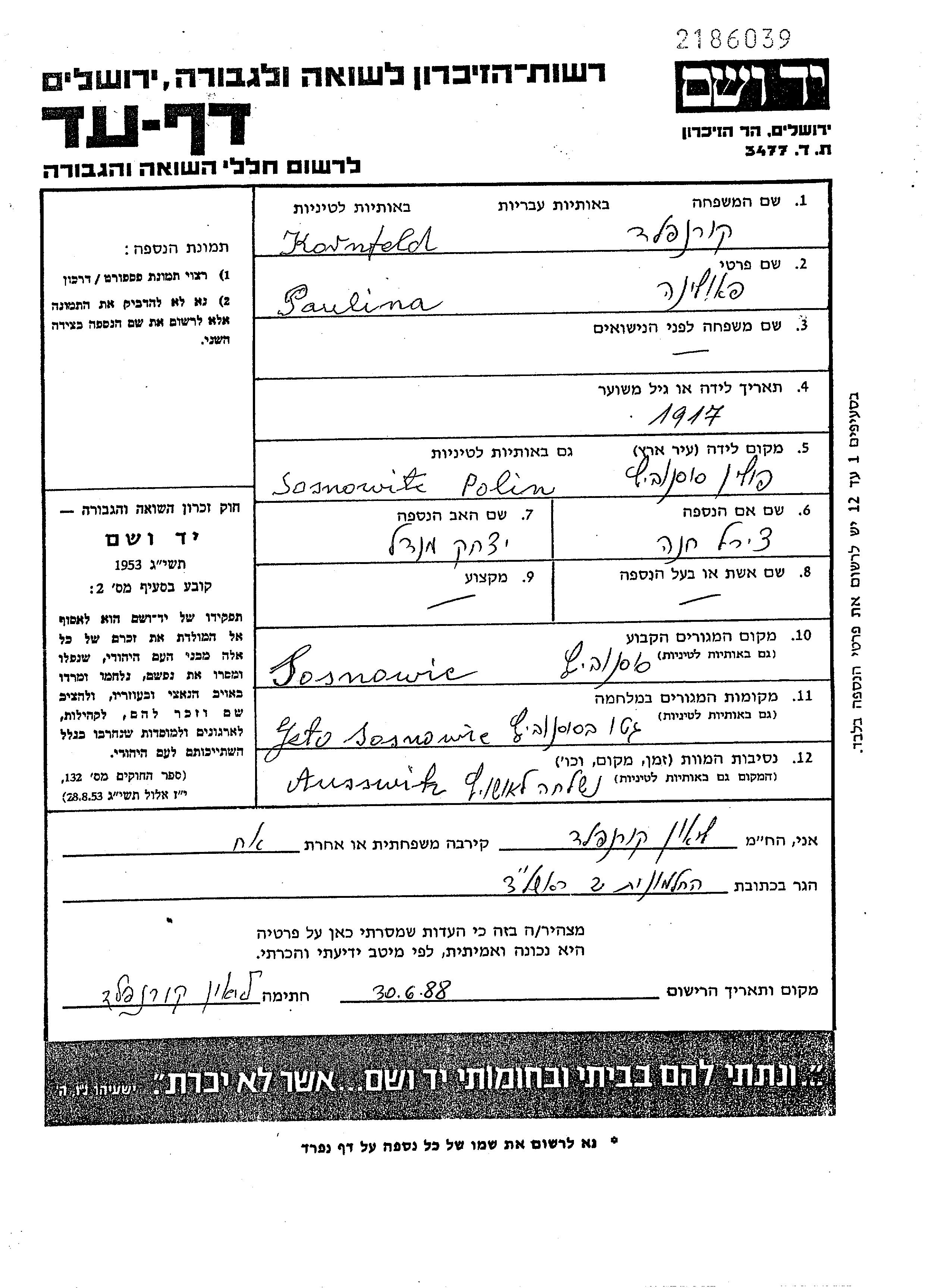 Paulina wurde in der Schoah ermordet. Todesort: Auschwitz, Polen.