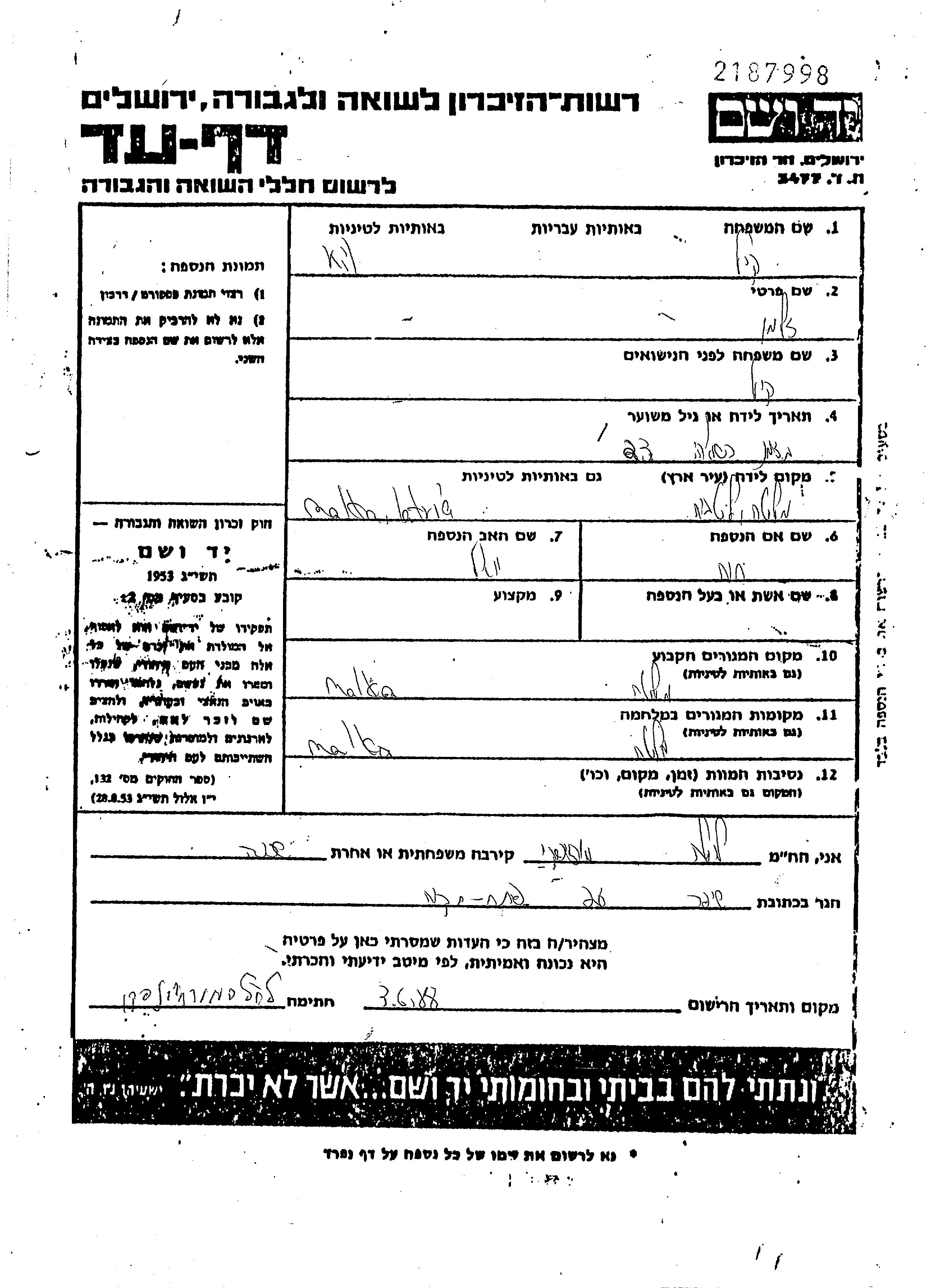 Zalman wurde in der Schoah ermordet.