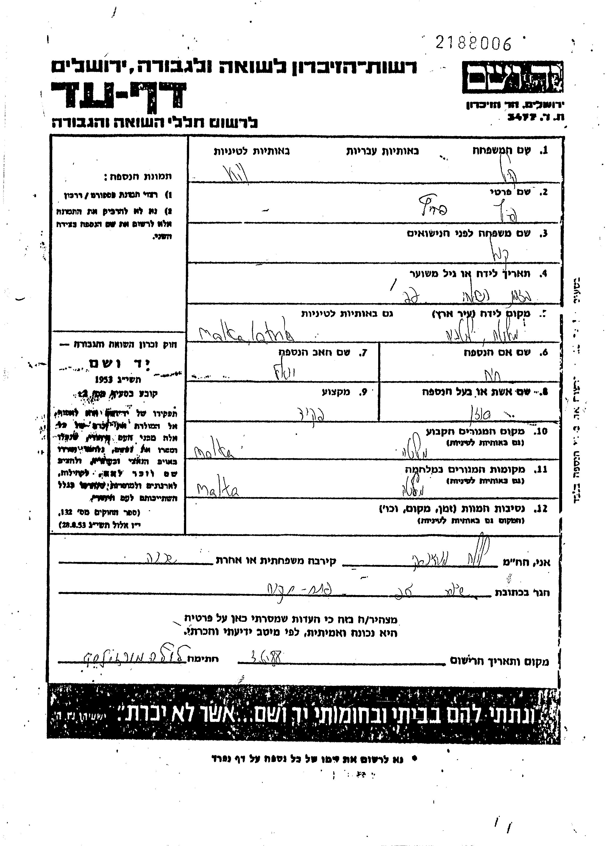 Peretz wurde in der Schoah ermordet.