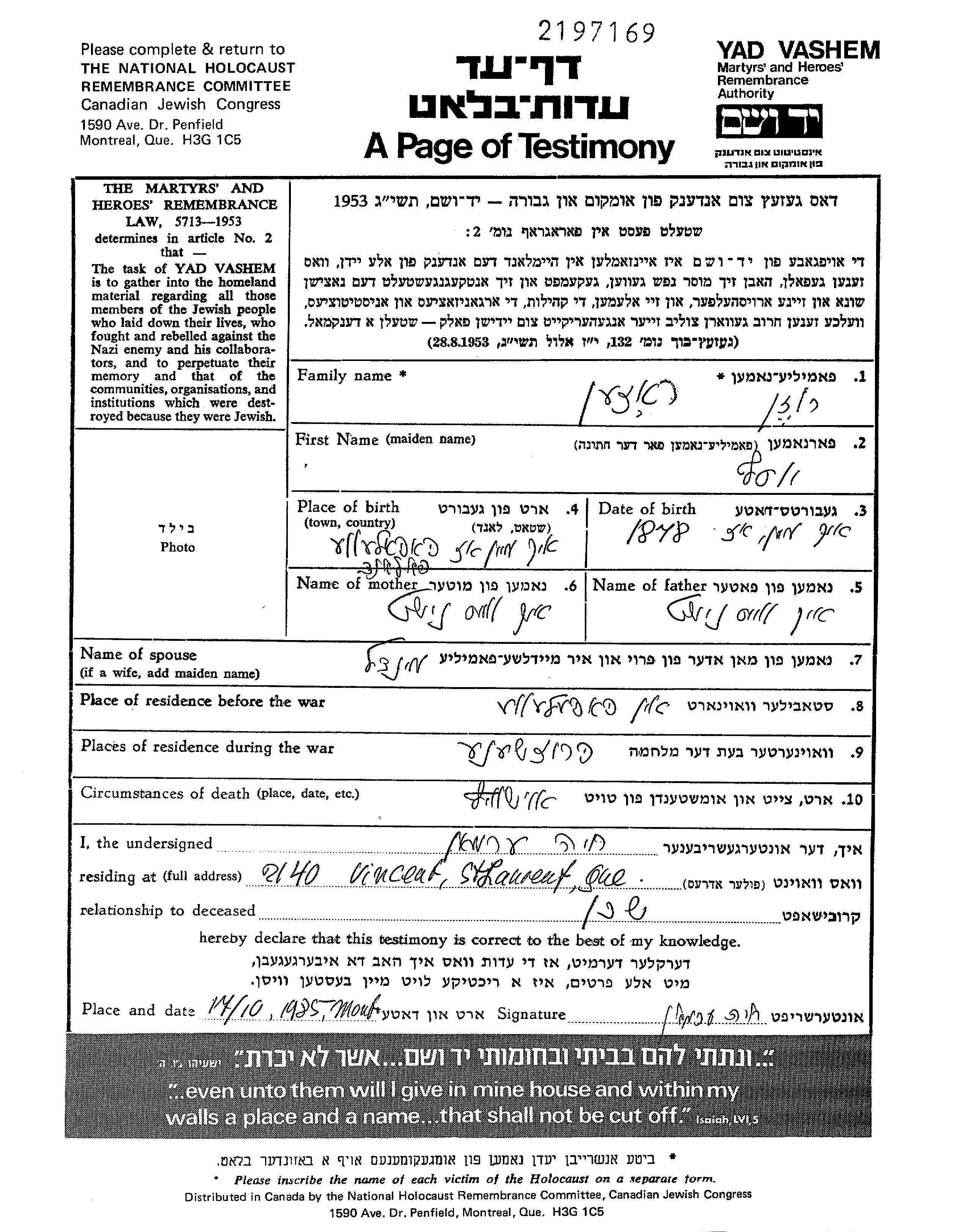 Yosef wurde in der Schoah ermordet. Todesort: Auschwitz, Polen.